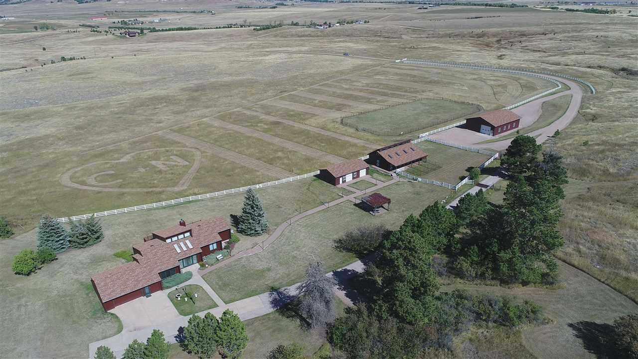 Call or text listing agent Rick Tysdal at 605-641-1030 or Jason Tysdal at 605-641-7260 at CENTURY 21 Spearfish Realty. This exquisite piece of property offers paradise for the outdoors enthusiast. Whether you are a horse person, vintner, car collector, custom bike builder or outdoors person, this property will satisfy all your needs; from the custom 4 bedroom home with attached two-car garage, a detached heated 44’x24’ two-stall shop including 3/4 bath, the 30’x48’ barn - nice enough to convert to a home, to the 42’x60’ Morton Building with wood siding to match the home and other outbuildings.