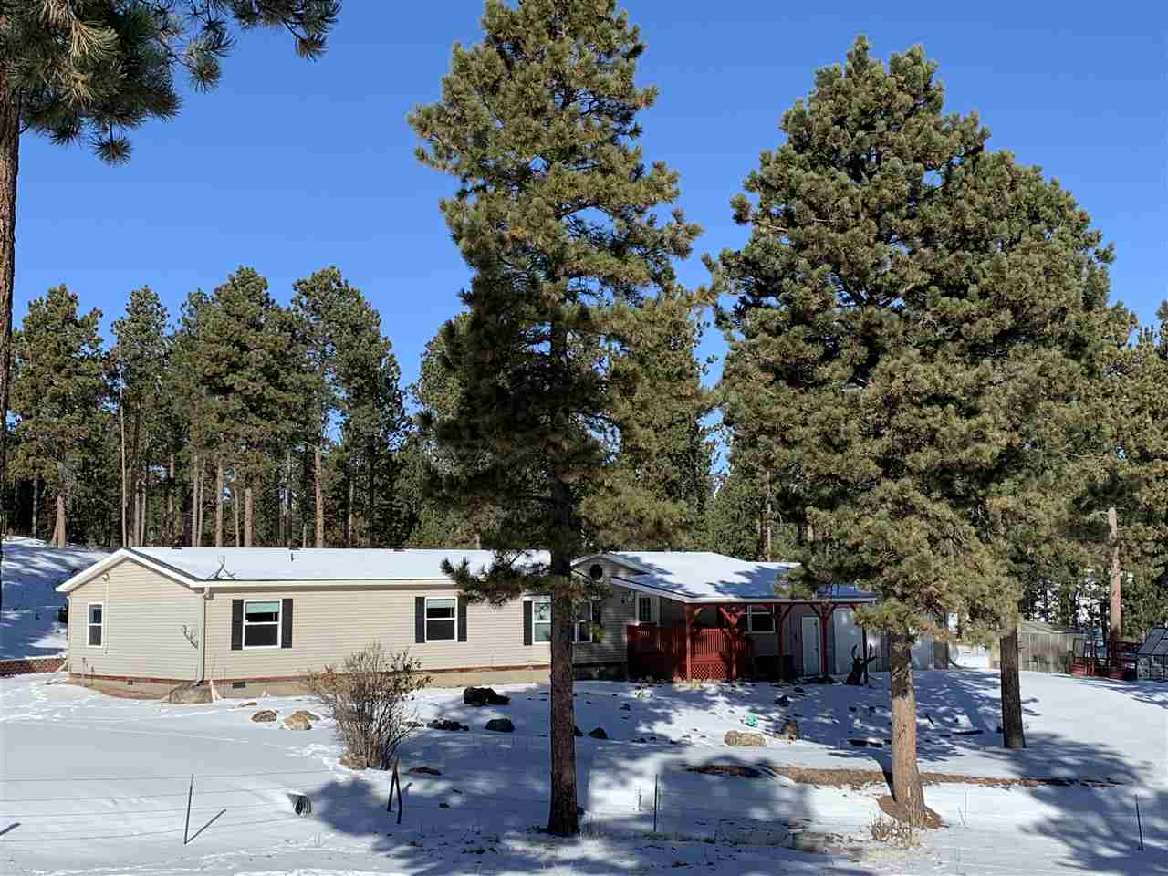 Listed by the Integrity Realty Team ~ Jim Peterson and June Johnson ~ (605) 574-4444. The Perfect Little Black Hills Horse Property!! If you are that horse lover then this one is for you. Anything you need for a few horses is right here at your fingertips. The owners did it right! There is a 44 x 65 Pole Barn consisting of 3 Stalls, covered horse shelter, tack room, (3) 10 x 10 overhead doors, Storage and Hay loft. A Beautiful 45 x 48 Morton Shop Building where Hank has had his Shop, Jeanie had her Studio, there is a large open space with a bathroom, a Loft and 2 overhead doors (14 x 14 & 10 x 10). A 14 x 45 addition has been added to the shop. The panels and round pen will stay. They have built a 28 x 44 detached garage where there is a covered storage area along with garage space. The horses have 2 loafing sheds to hang out in and a nice tack/grain shed in the south field. Bring the whole family for there is plenty of living space in this 2,315 sq. ft. home.
