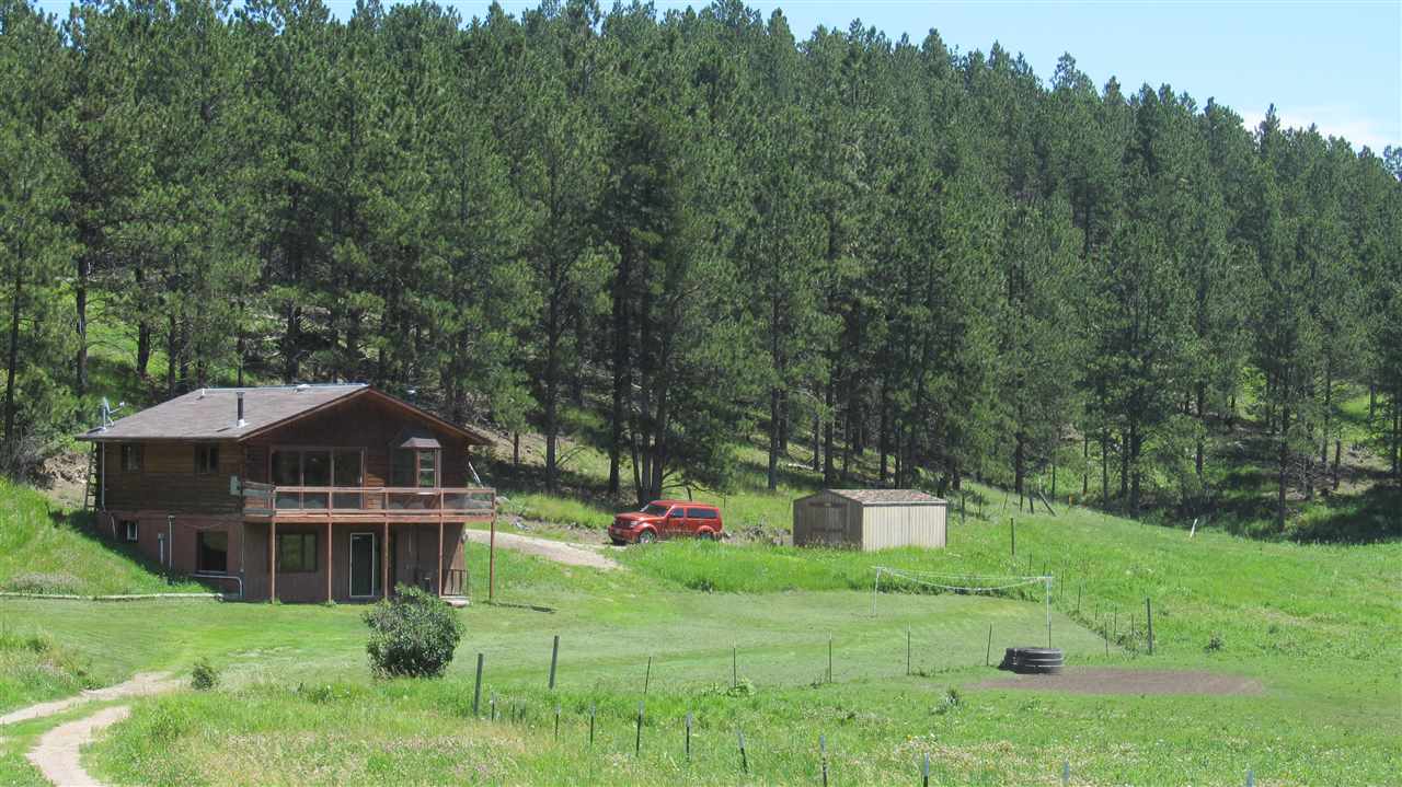 Listed by the Integrity Realty Team ~ Jim Peterson and June Johnson. (605) 574-4444. Living OFF GRID may not be for everyone but if it is your kind of living here is the place for you. This is a 2 bedroom, 2 bath log sided home sitting on a basement. The views are gorgeous from the deck while overlooking the 11.02 acres. Seasonal creek flows through the property. The property is fenced and ready for the horses! Spectacular pasture! Nice views and beautiful night time skies! This home is heated with a propane fireplace along with a wood stove in the basement. Bigger kitchen upstairs with a breakfast bar and dining area with tongue and groove on the ceilings. A spiral staircase connects the upstairs to the basement making this quite a unique property. The property borders the Black Hills National Forest for 1,000's of acres of exploring to go on. With a little TLC this could make a spectacular space to call home.