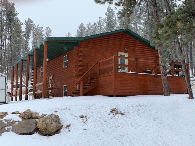 Attractive, well-built log sided home situated on I acre of land located on Homestead Drive at the north edge of Custer. 2"X6" construction plus 2" log siding creates a very well insulated home. Vaulted ceilings in the living room and kitchen/dining room areas. Pine tongue & groove ceiling and walls. Wood floors and carpeted bedrooms. 3 bedrooms and 2 full baths. Family room in finished basement. Bonus room that could be office or craft room. Home is comfortably heated with propane wall furnace in the basement but also has electric cove heat throughout. All appliances stay. Propane tank is owned. 3 vehicle detached garage. One stall in the garage could be separated and made into a shop. Three other storage buildings, one of which is big enough to park two vehicles inside. Close to all of the Custer Community amenities and Custer's Monument Health Care facilities. Close to the Mickelson Trail.