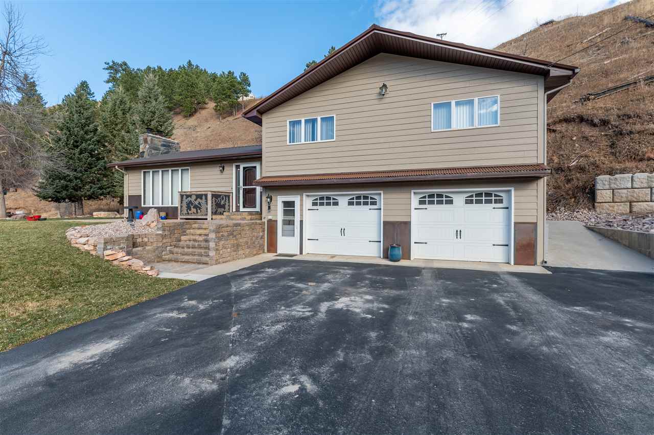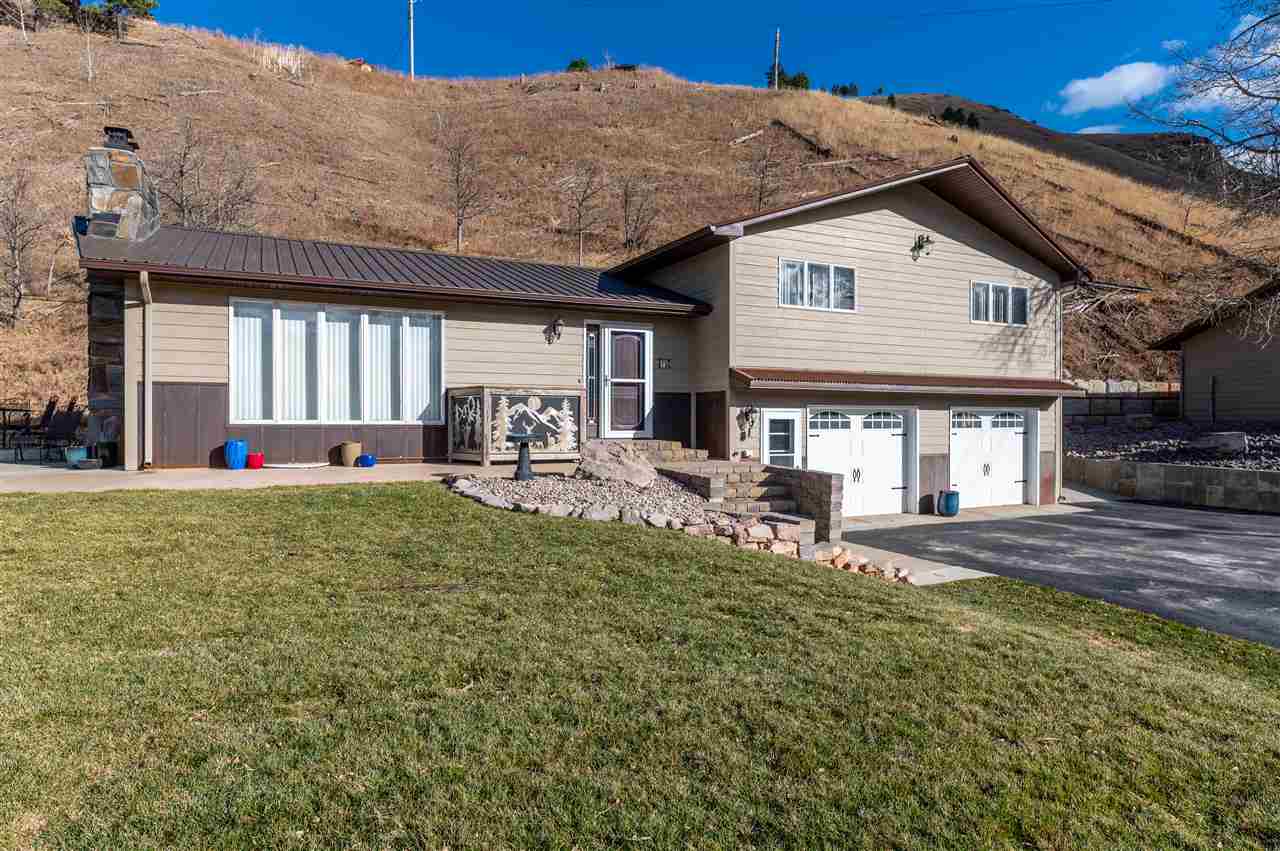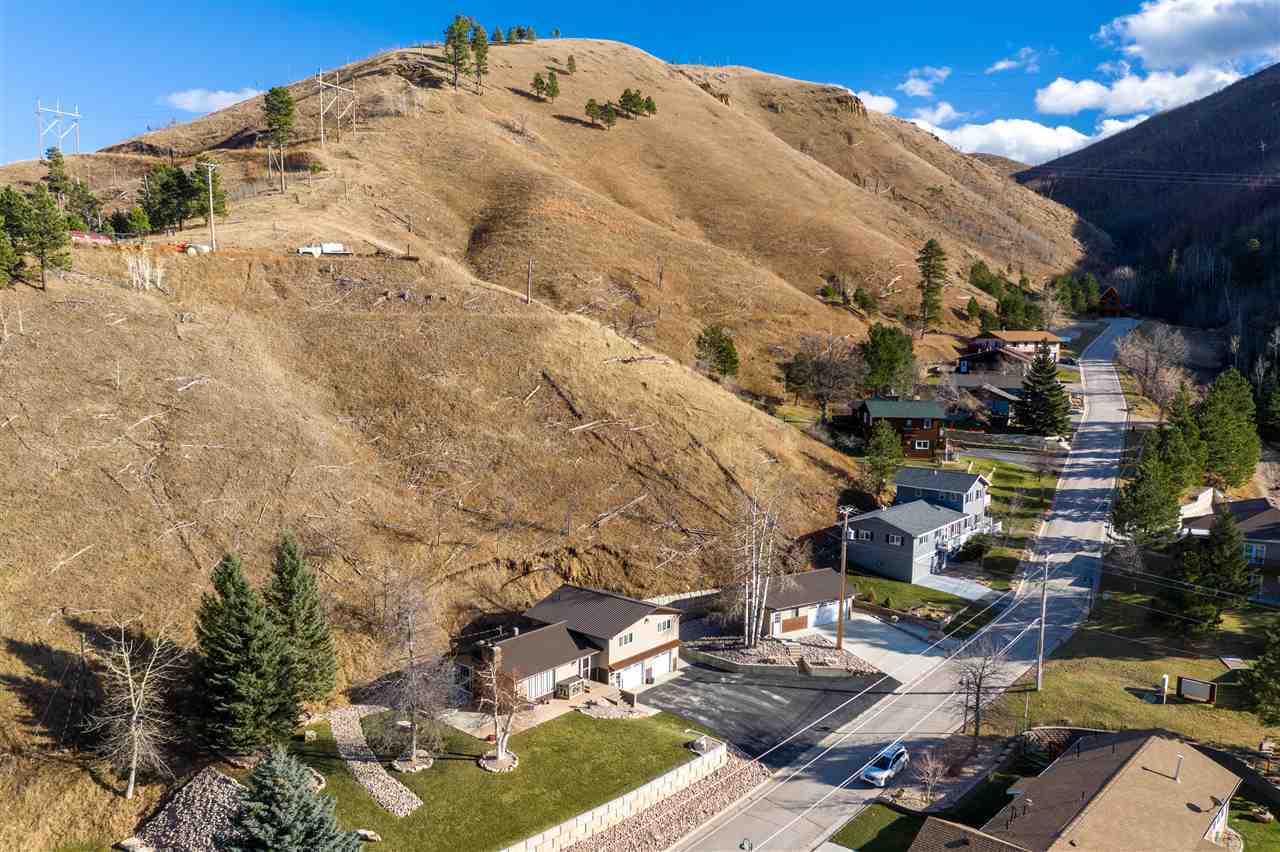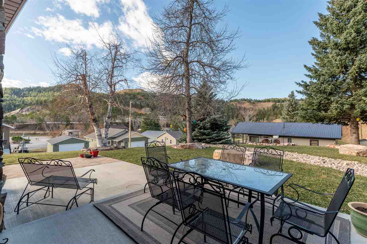 Contact Greg Klein 605-920-1342 with Century 21 Associated Realty, Inc. for showings and more information. Absolutely dreamy 4 bedroom Deadwood home with an open living room, windowed views, and high quality finishes. The open living room has high-end wood flooring, gas fireplace, vaulted ceilings with tongue & groove wood accents, and walkout to side patio. Kitchen has large island with granite countertops, large vent hood, and high-end cabinetry. Basement has nice travertine tile, large master bedroom with gas log fireplace, master bathroom is large with tiled shower and walk-in closet. Upper level has 3 bedrooms and two bathrooms with shower and one with laundry. One of these larger bedrooms has on-suite bathroom. Large yard space with views and treed shade. This home has an amazing amount of upgrades. Since purchasing the home in 2012, owner has installed new metal roof, new siding, new air conditioner, travertine and hardwood floors throughout home, underground sprinklers, new gas fireplace inserts in living room and master bedroom, major retaining wall construction, wood ceilings, kitchen cabinets, and granite countertops in kitchen and bathroom. This is a nice location, on a paved road, close to downtown and trails.