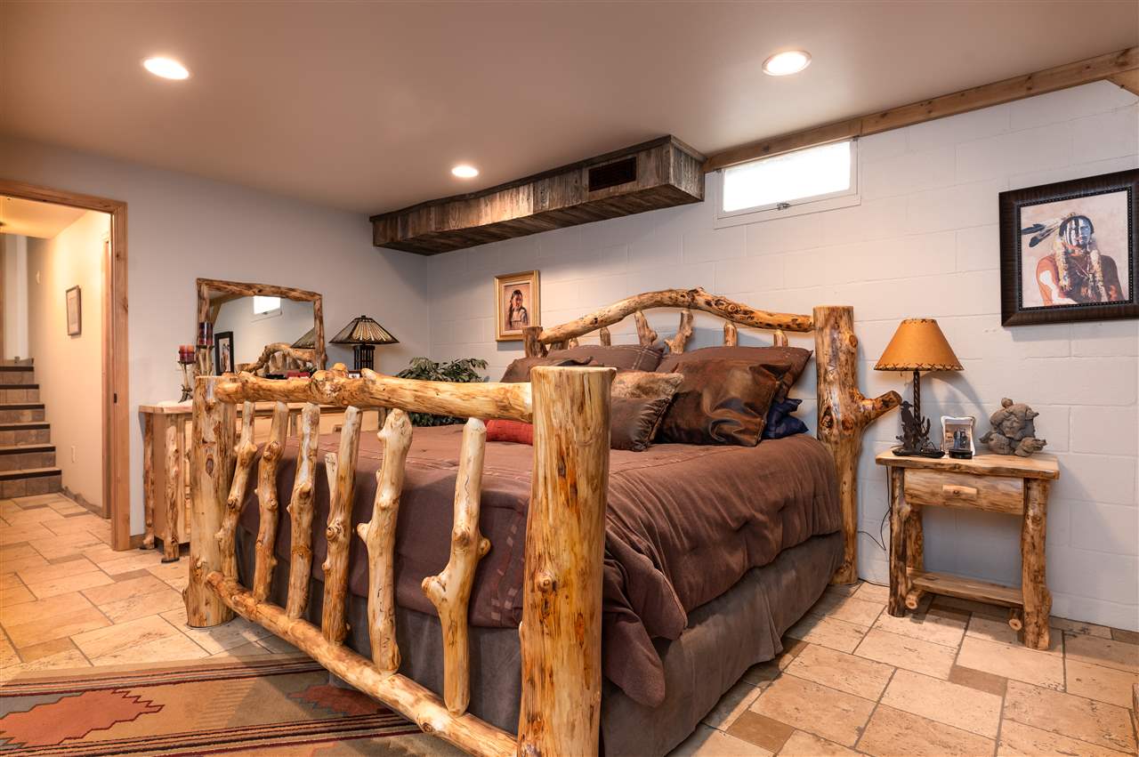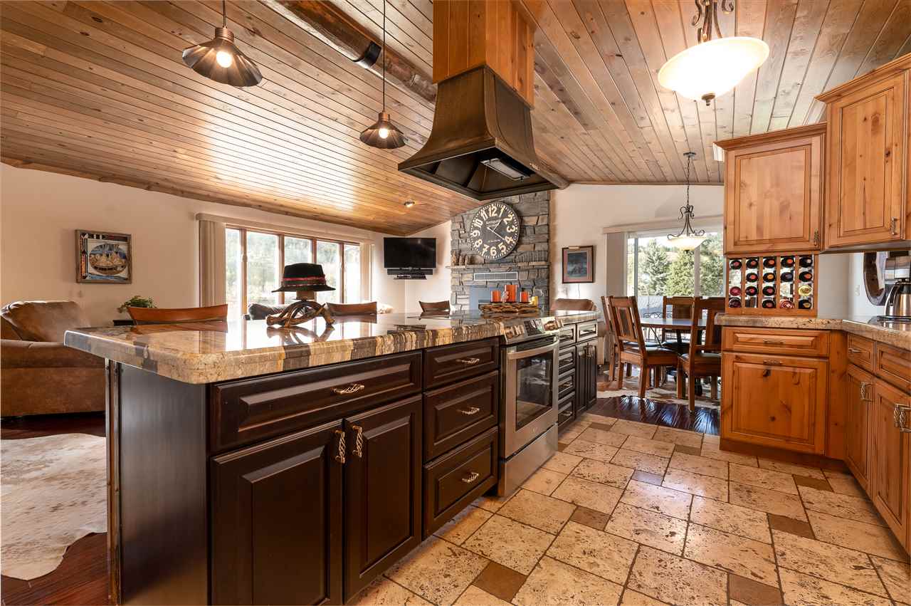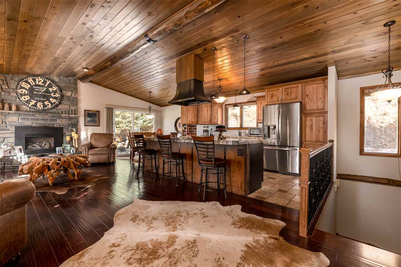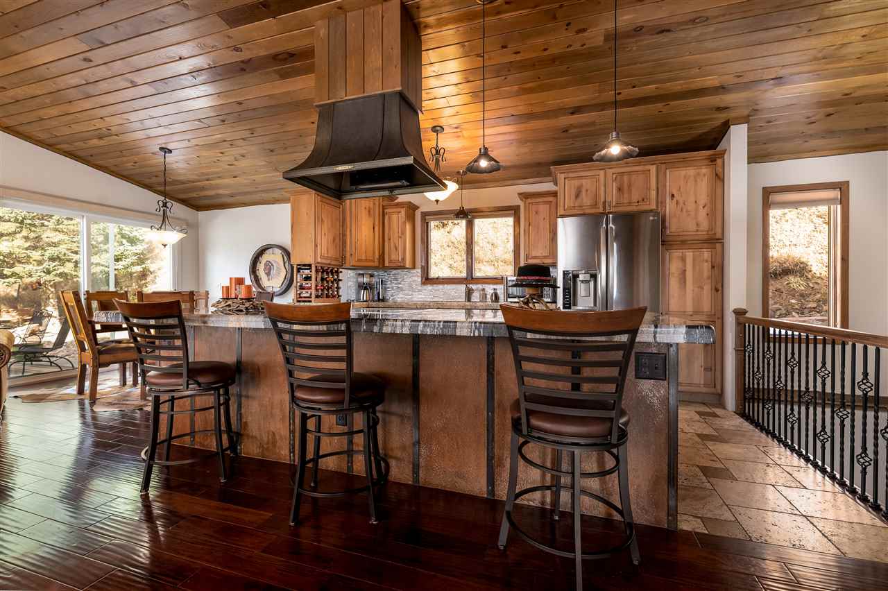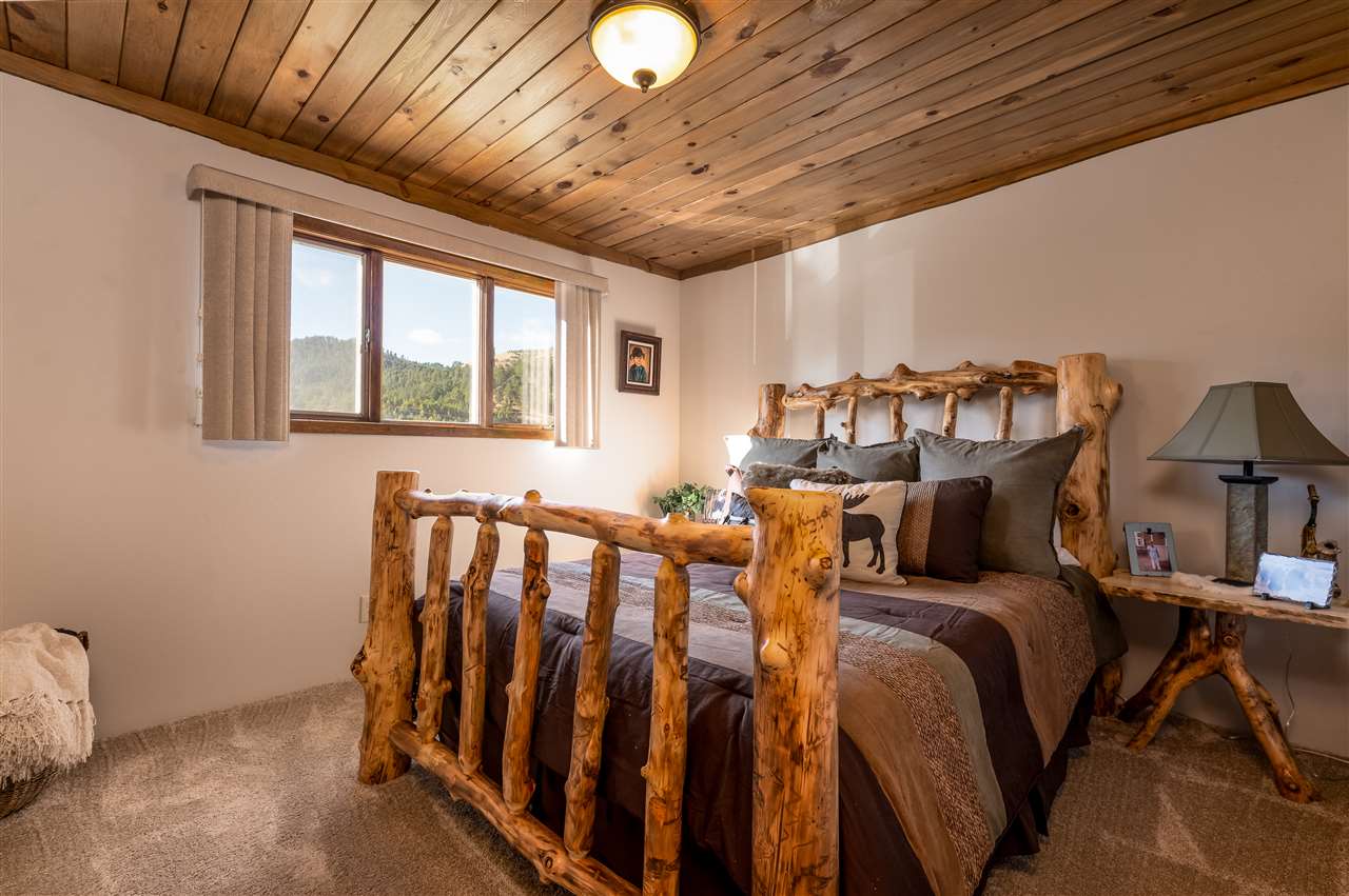 Contact Greg Klein 605-920-1342 with Century 21 Associated Realty, Inc. for showings and more information. Absolutely dreamy 4 bedroom Deadwood home with an open living room, windowed views, and high quality finishes. The open living room has high-end wood flooring, gas fireplace, vaulted ceilings with tongue & groove wood accents, and walkout to side patio. Kitchen has large island with granite countertops, large vent hood, and high-end cabinetry. Basement has nice travertine tile, large master bedroom with gas log fireplace, master bathroom is large with tiled shower and walk-in closet. Upper level has 3 bedrooms and two bathrooms with shower and one with laundry. One of these larger bedrooms has on-suite bathroom. Large yard space with views and treed shade. This home has an amazing amount of upgrades. Since purchasing the home in 2012, owner has installed new metal roof, new siding, new air conditioner, travertine and hardwood floors throughout home, underground sprinklers, new gas fireplace inserts in living room and master bedroom, major retaining wall construction, wood ceilings, kitchen cabinets, and granite countertops in kitchen and bathroom. This is a nice location, on a paved road, close to downtown and trails.