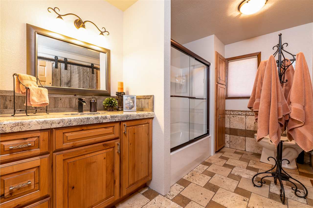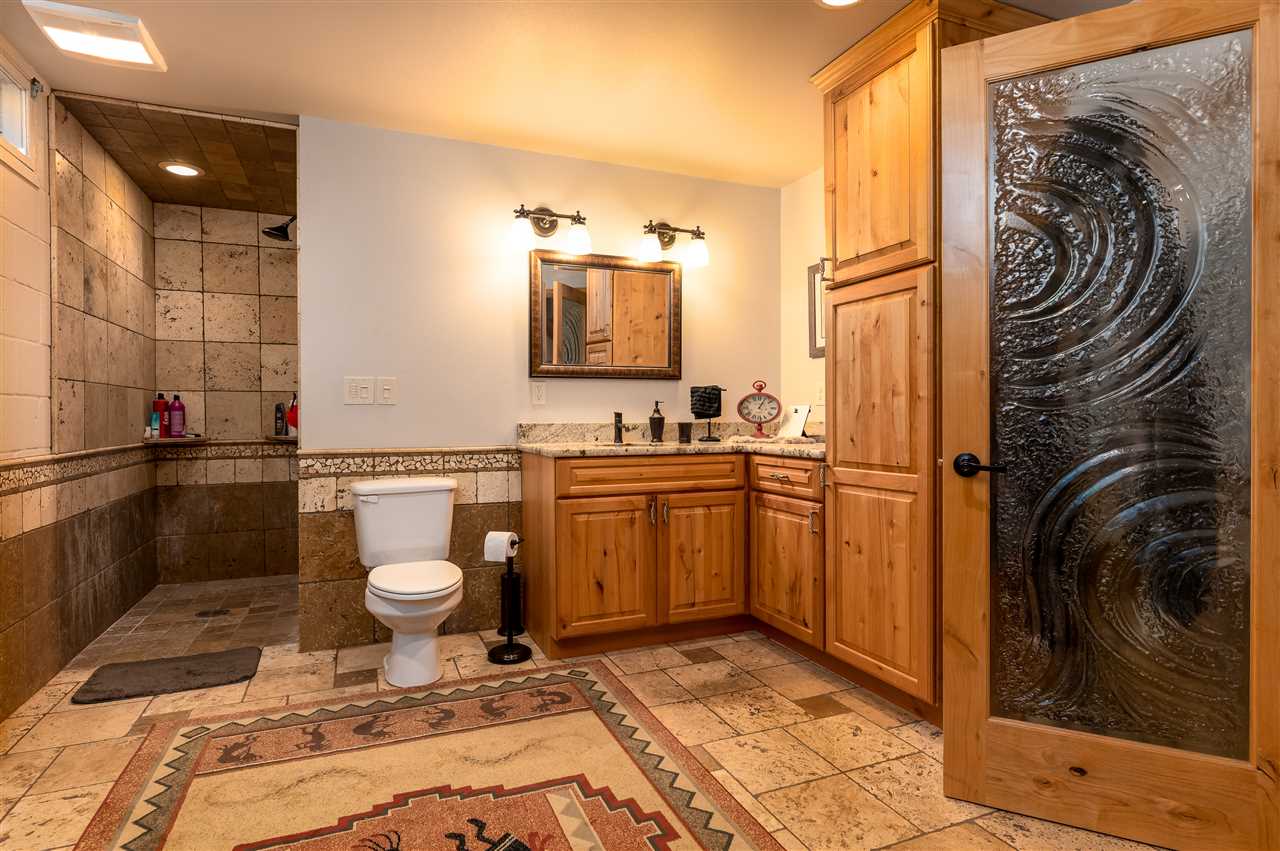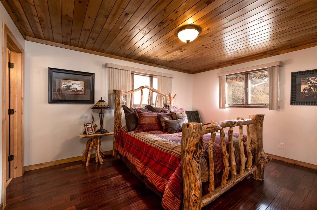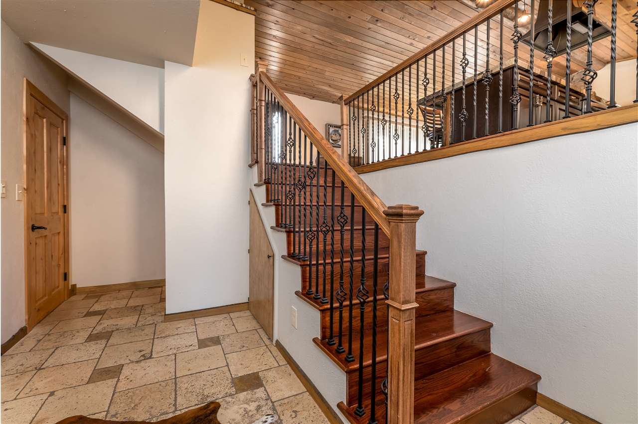 Contact Greg Klein 605-920-1342 with Century 21 Associated Realty, Inc. for showings and more information. Absolutely dreamy 4 bedroom Deadwood home with an open living room, windowed views, and high quality finishes. The open living room has high-end wood flooring, gas fireplace, vaulted ceilings with tongue & groove wood accents, and walkout to side patio. Kitchen has large island with granite countertops, large vent hood, and high-end cabinetry. Basement has nice travertine tile, large master bedroom with gas log fireplace, master bathroom is large with tiled shower and walk-in closet. Upper level has 3 bedrooms and two bathrooms with shower and one with laundry. One of these larger bedrooms has on-suite bathroom. Large yard space with views and treed shade. This home has an amazing amount of upgrades. Since purchasing the home in 2012, owner has installed new metal roof, new siding, new air conditioner, travertine and hardwood floors throughout home, underground sprinklers, new gas fireplace inserts in living room and master bedroom, major retaining wall construction, wood ceilings, kitchen cabinets, and granite countertops in kitchen and bathroom. This is a nice location, on a paved road, close to downtown and trails.