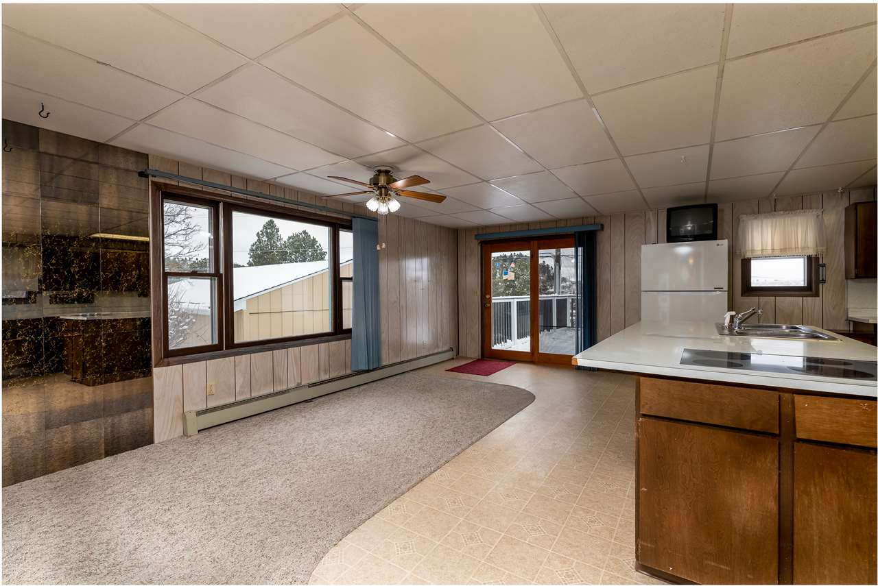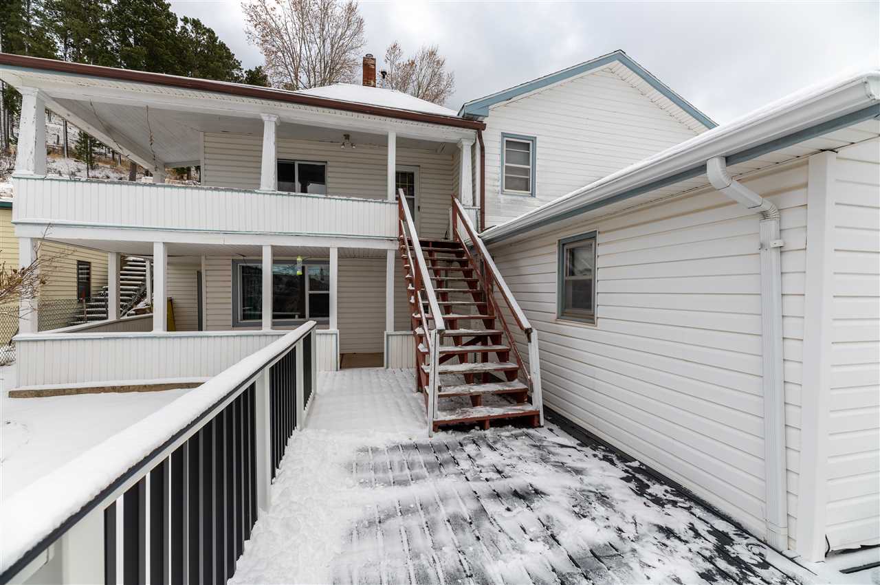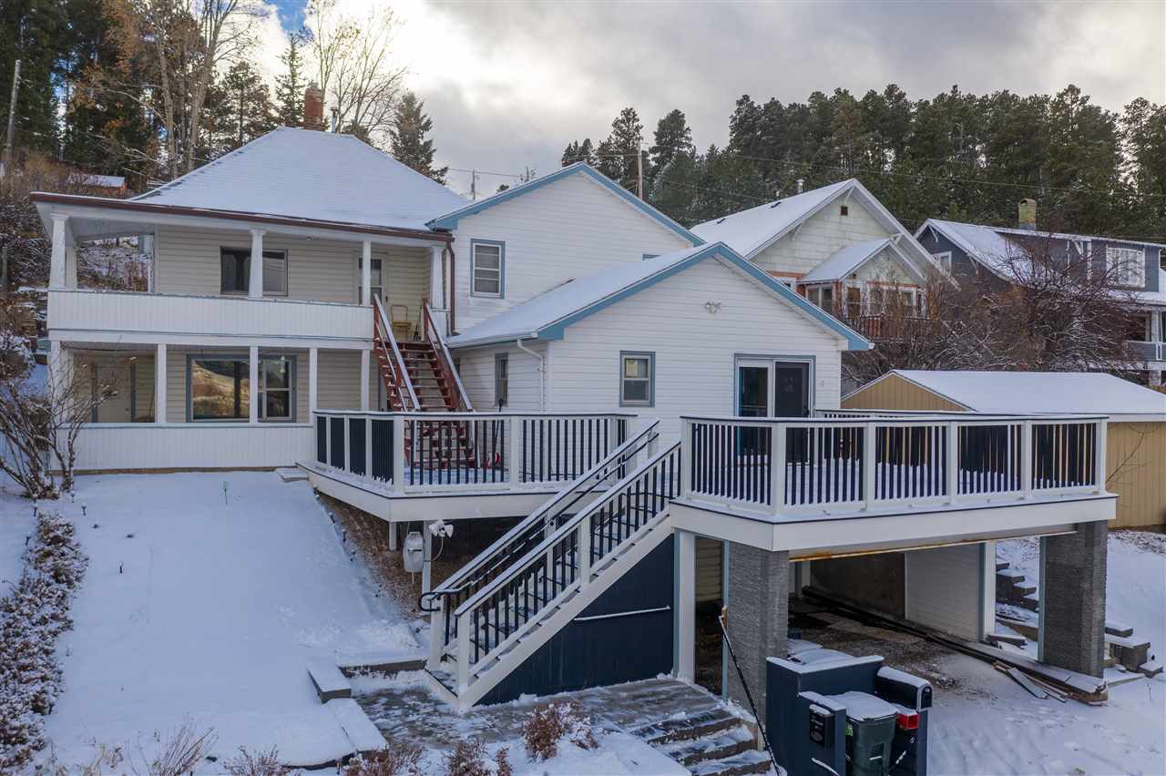 Listed with Spencer Rossi, Top Shelf Realty, 605-269-1600. A large trex deck with a VIEW and perfect for sunset parties! This multi level home looks out at the Open Cut and hosts a great kitchen/dining room area with space to entertain a group and tons of counter space! Part of the home was built in 1900 and the addition came much later. Unlike many Lead homes, this one has a deep single car garage AND a covered carport. Space out back to create a garden/peaceful spot and playground accross the street. Upper part of the home hosts main bedroom as well as a rental area with a bathroom and 2-3 bedrooms depending on how you set it up. Make the whole house for you or keep rental income flowing...you decide. This home needs TLC and offers much potential!!