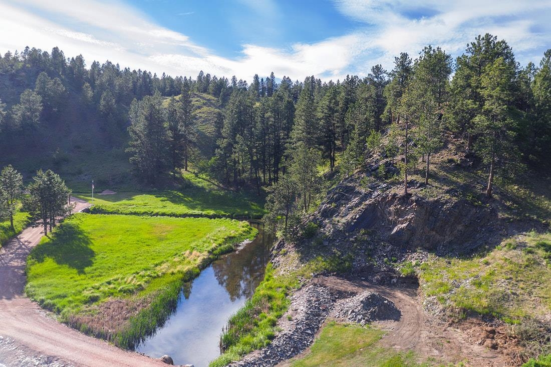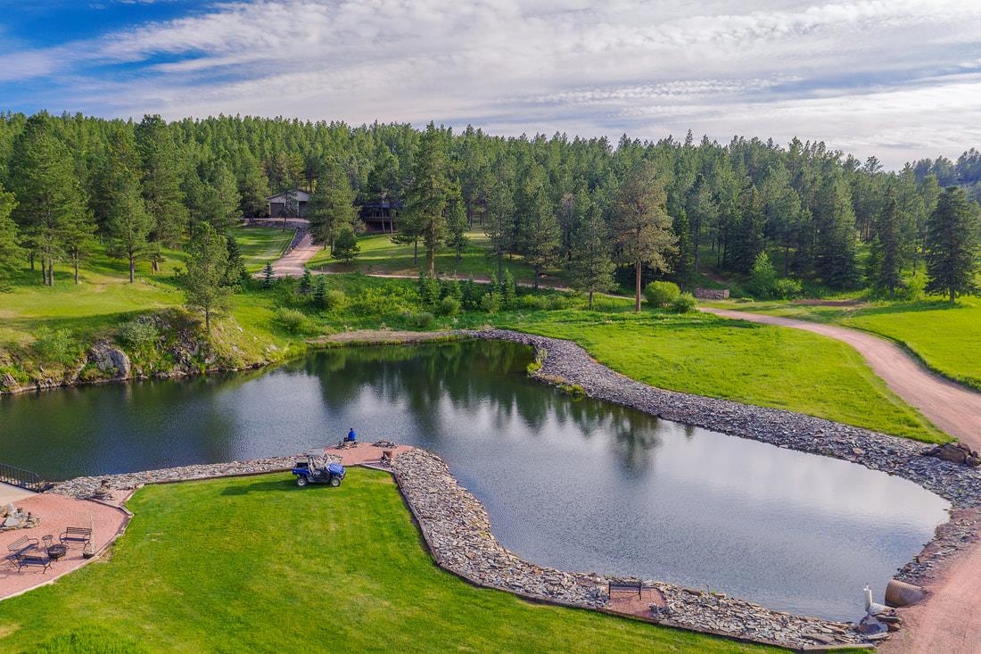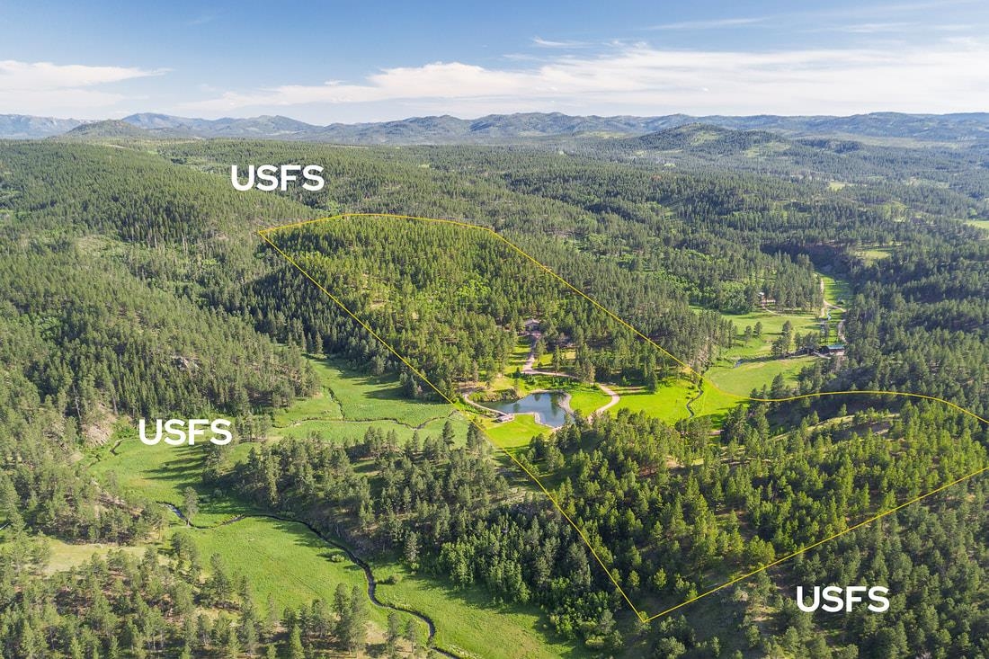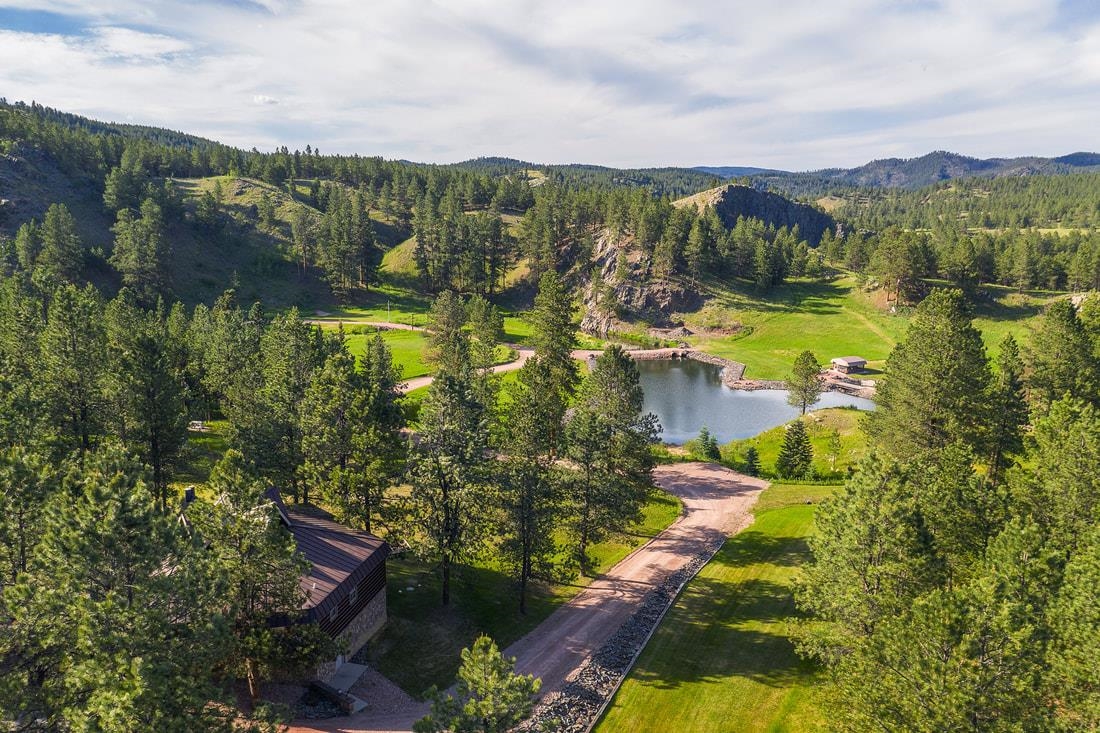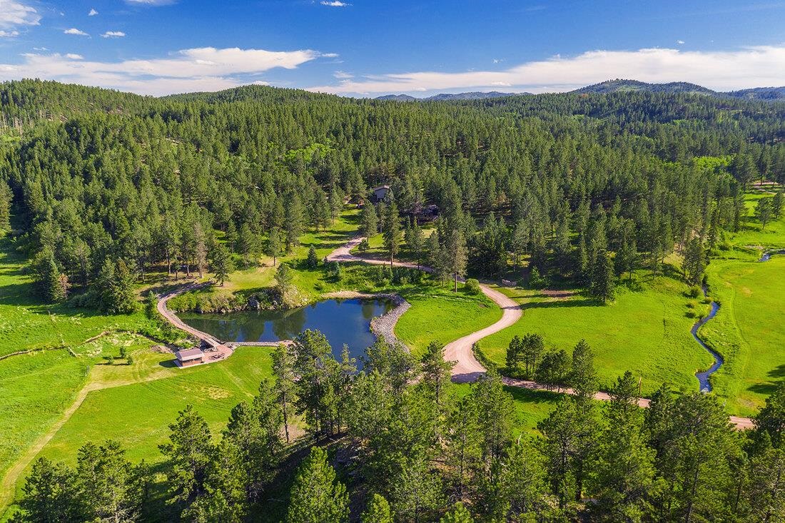 40 acres and a custom one of a kind home in the heart of the Black Hills bordering USFS and Slate Creek with its own fishing pond. Outbuildings include huge two-level Morton building for RV storage, workshop and toys. If you desire end of the road seclusion, creek-side, fishing, hiking, ATV with room to roam in the best place within the freest state in America, make an appointment to see the most incredible property for sale in the Black Hills of South Dakota. Transaction and conveyance to be via sale of all units and assets of Slate Creek Partners, LLC. Seller will subdivide into separate parcels, including north parcel with 10 acres (MLS 79967), middle parcel with 20 acres, house, shop and storage buildings (MLS 79975), and south parcel with 10 acres (MLS 79972). Easements for joint maintenance of pond, bridges and for access to be recorded at closing if property divided.