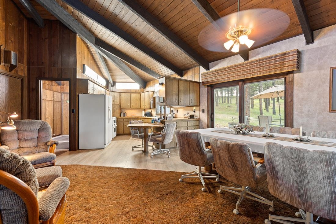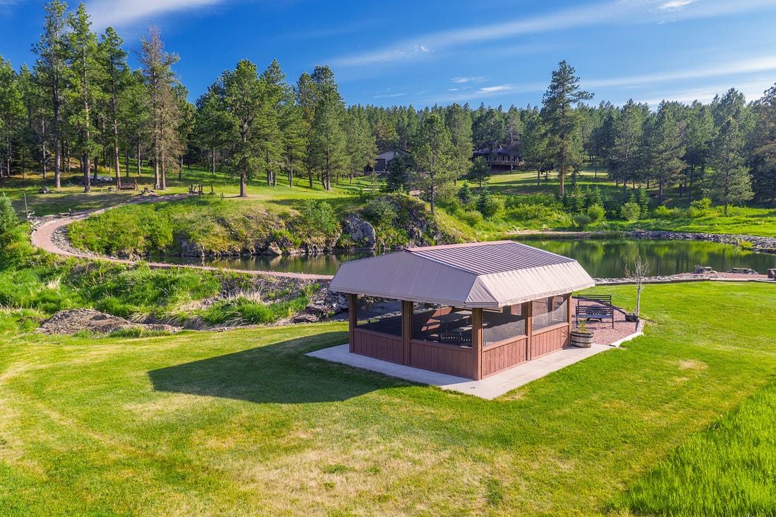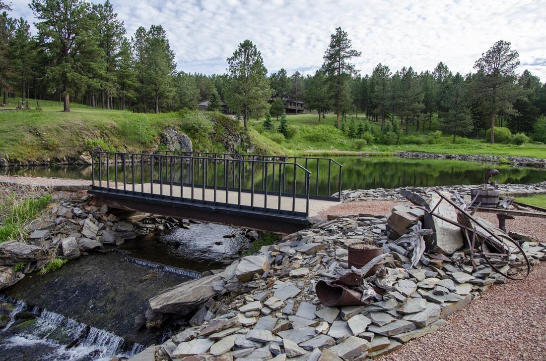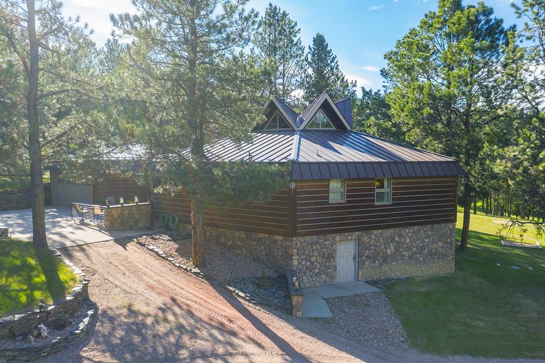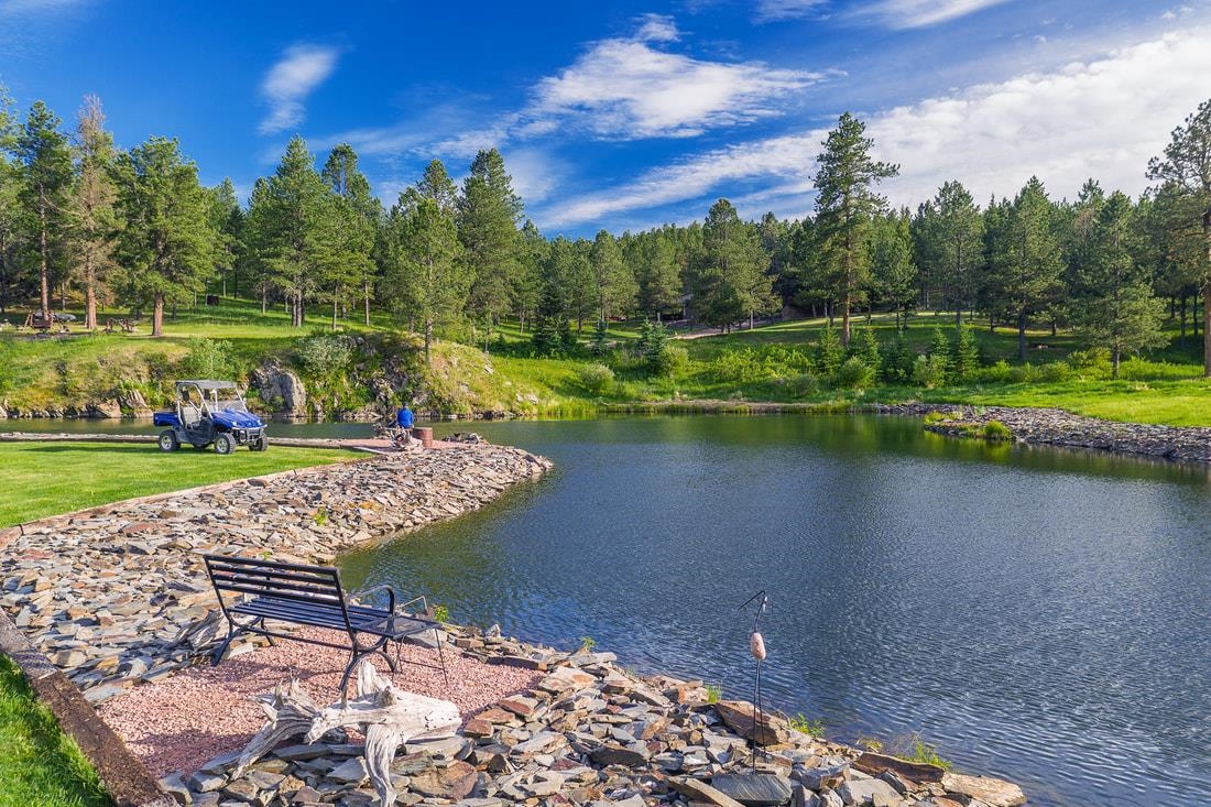 40 acres and a custom one of a kind home in the heart of the Black Hills bordering USFS and Slate Creek with its own fishing pond. Outbuildings include huge two-level Morton building for RV storage, workshop and toys. If you desire end of the road seclusion, creek-side, fishing, hiking, ATV with room to roam in the best place within the freest state in America, make an appointment to see the most incredible property for sale in the Black Hills of South Dakota. Transaction and conveyance to be via sale of all units and assets of Slate Creek Partners, LLC. Seller will subdivide into separate parcels, including north parcel with 10 acres (MLS 79967), middle parcel with 20 acres, house, shop and storage buildings (MLS 79975), and south parcel with 10 acres (MLS 79972). Easements for joint maintenance of pond, bridges and for access to be recorded at closing if property divided.