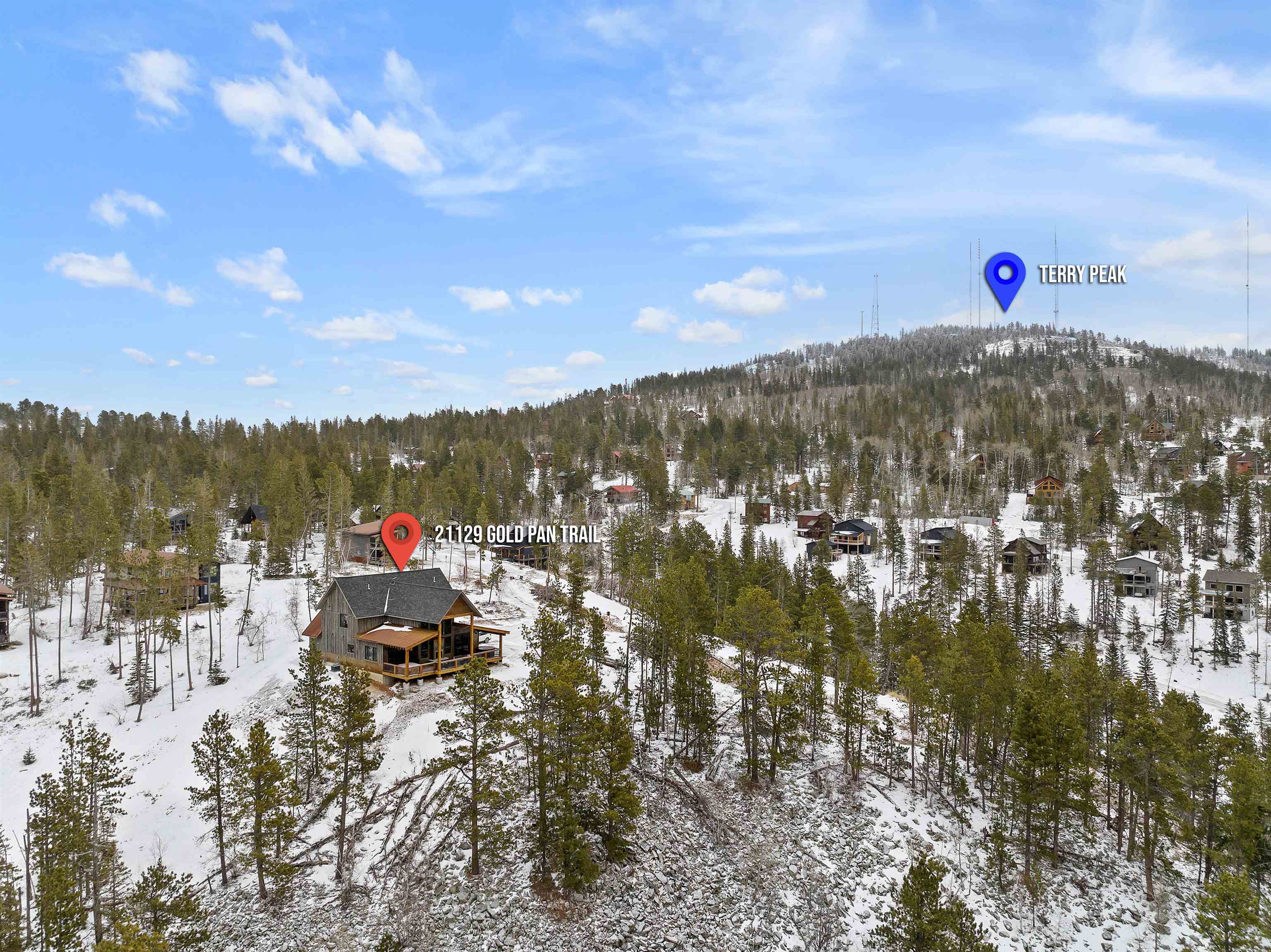 For more information, contact listing agents Scot Munro 605-641-6482 or Heath Gran 605-209-2052 with Great Peaks Realty. Come take a look at this stunning cabin in Lost Camp Valley subdivision of Terry Peak with 2 LOTS giving you ample space to add a garage or guest house. Make this your next investment in a sought-after area for vacation rentals or weekend getaways due to the immense amount of Black Hills activities nearby. Enjoy being near ATV/snowmobiling trails, Terry Peak Ski Area, Mickelson Trail, Historic Deadwood & so much more! Entertain in the spacious open layout on the main level and cozy up in the living room with two sided gas log fireplace which also can be enjoyed from the covered deck. Cook with family & friends in the elegantly appointed kitchen with large island, or step from the dining room out to the covered deck where you can take in the endless views! The main floor is also home to the primary ensuite, a guest bedroom, and a large laundry room. Step upstairs to the cozy loft area with two bedroom ensuites including a fantastic bunkroom that is non-conforming. This is a must see, call now!