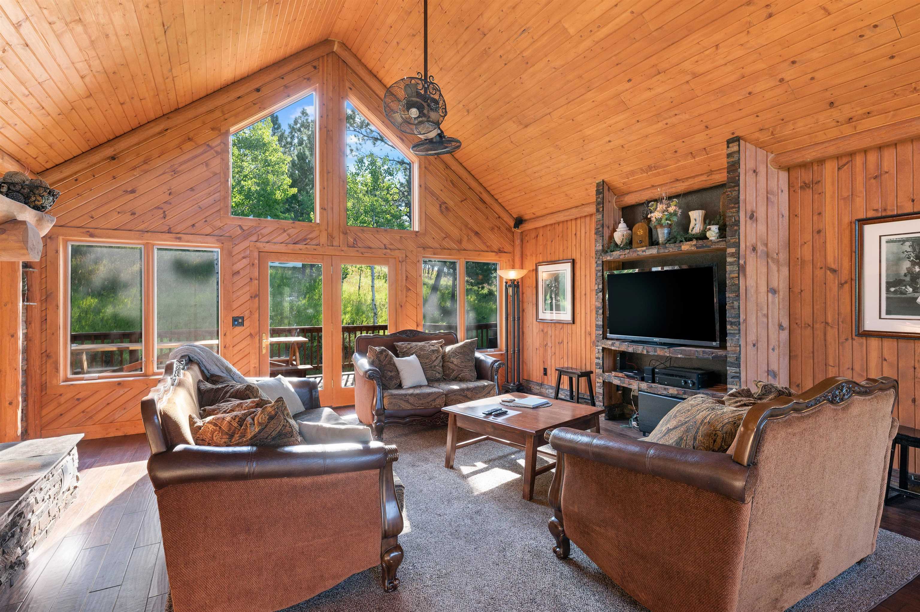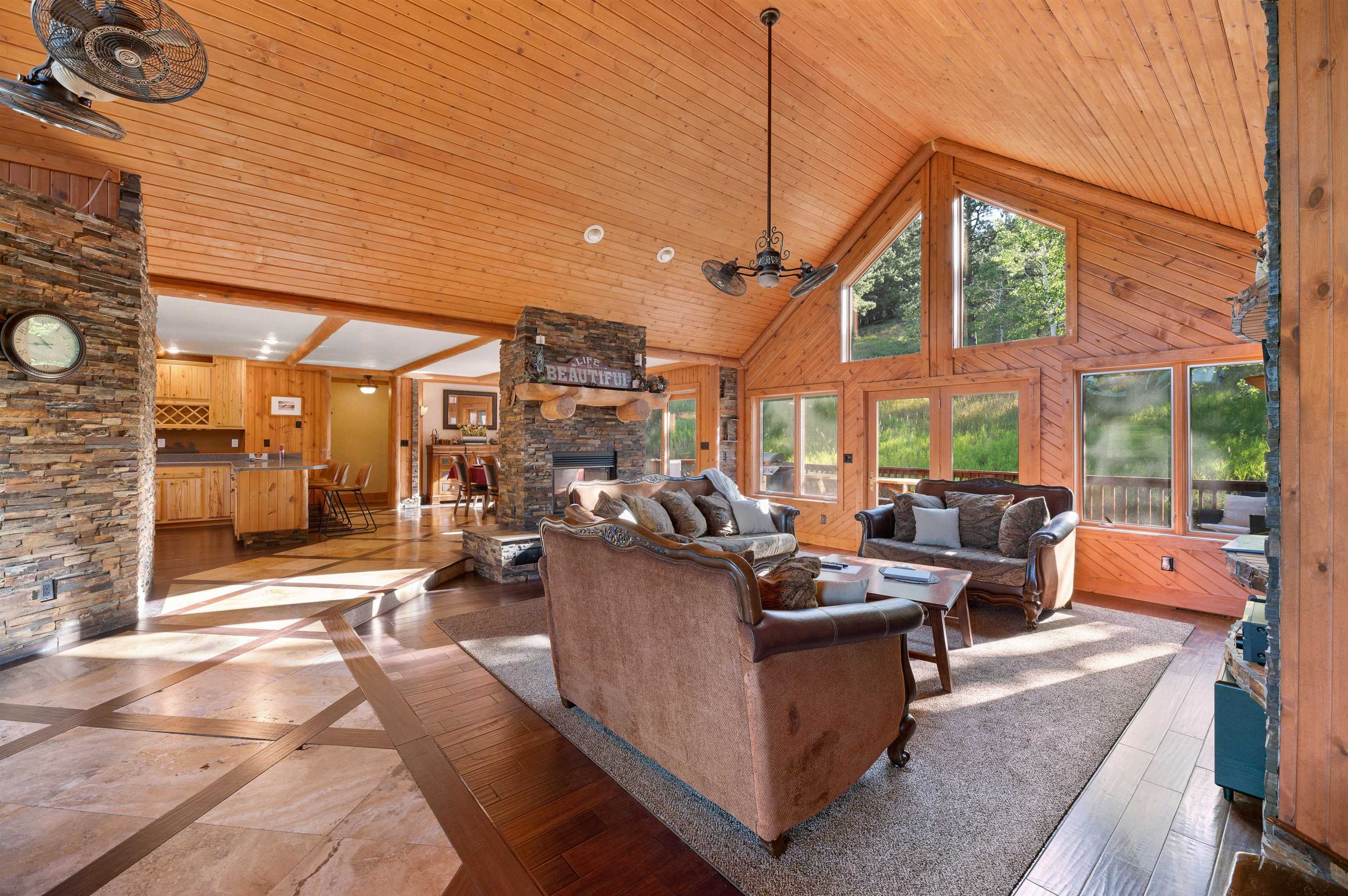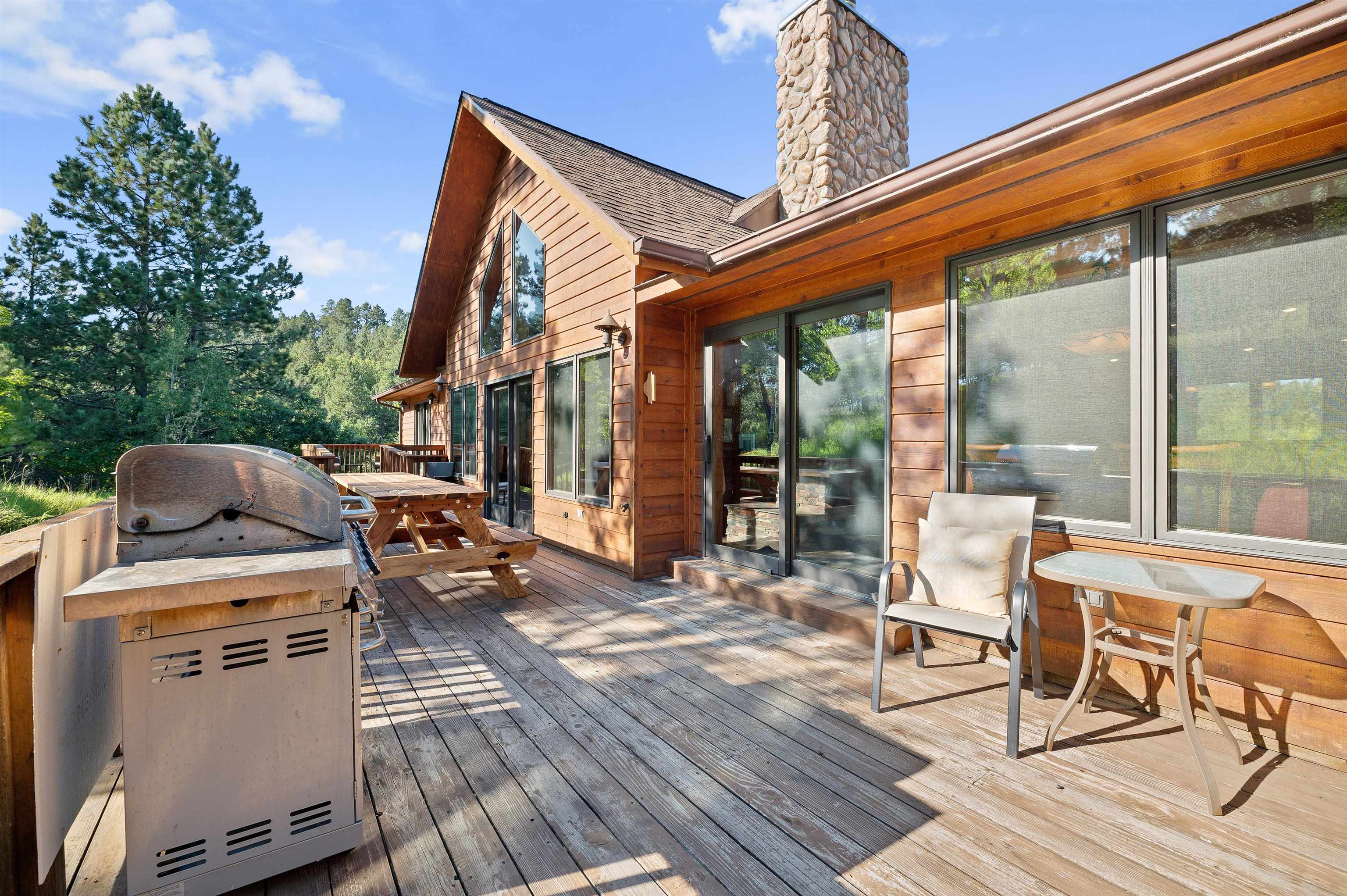 Property presented by Ashley S. Goodrich, SRS at RE/MAX In The Hills (605) 645-2479. An executive turn-key property nestled in the Shirt Tail Gulch S/D off of Boulder Canyon in The Black Hills. Just a few short minutes from Historic Downtown Deadwood! Nice paved roads all the way up to the front door to this beautiful sanctuary. Breathtaking 3.02+/- wooded acres with great privacy. There is a seasonal water feature/ pond right out your front door! About 1 mile from Historic Deadwood and approx. 13 miles to Sturgis, SD! Luxury finishes and warm tones allow this cabin make you feel right at home! 4 bedrooms, 3 bathrooms, huge 3 car garage, home is approximately 3,664 sq. ft.! Master suite is spacious and functional with remodeled bathrooms. The 2 sided fire place in living and dining room allow you to entertain with the open concept and nice flow from room to room. Huge kitchen breakfast bar provides additional seating. Tons of storage and room to move around while you cook! The garage is 34x26 w/ additional storage room. The basement is walkout and leads you to the free standing hot tub. Sit out on the wrap around covered/open wood decks to enjoy the lovely evenings. Tons of summer and winter sports to enjoy very close by if desired! It's an amazing opportunity.