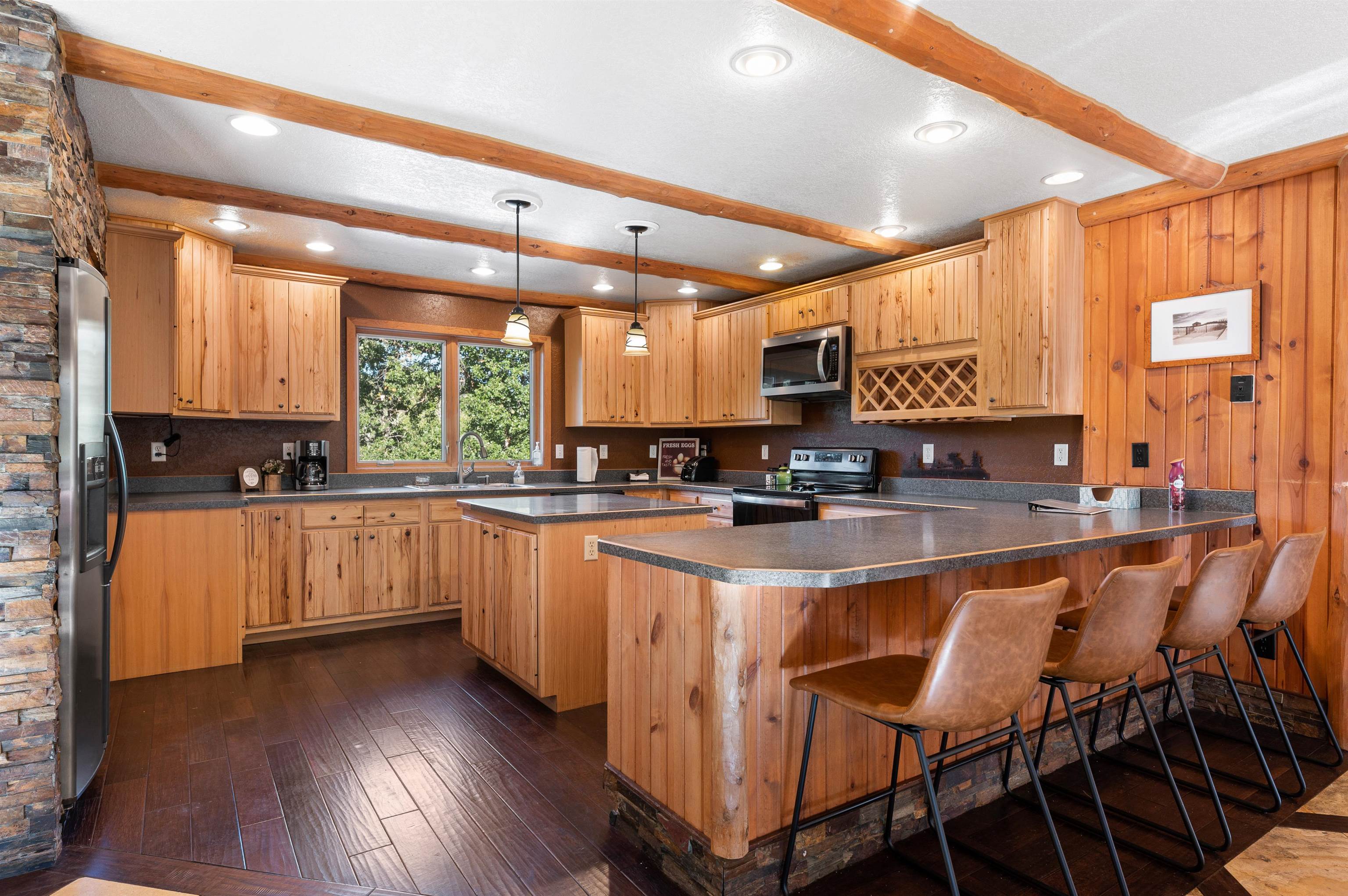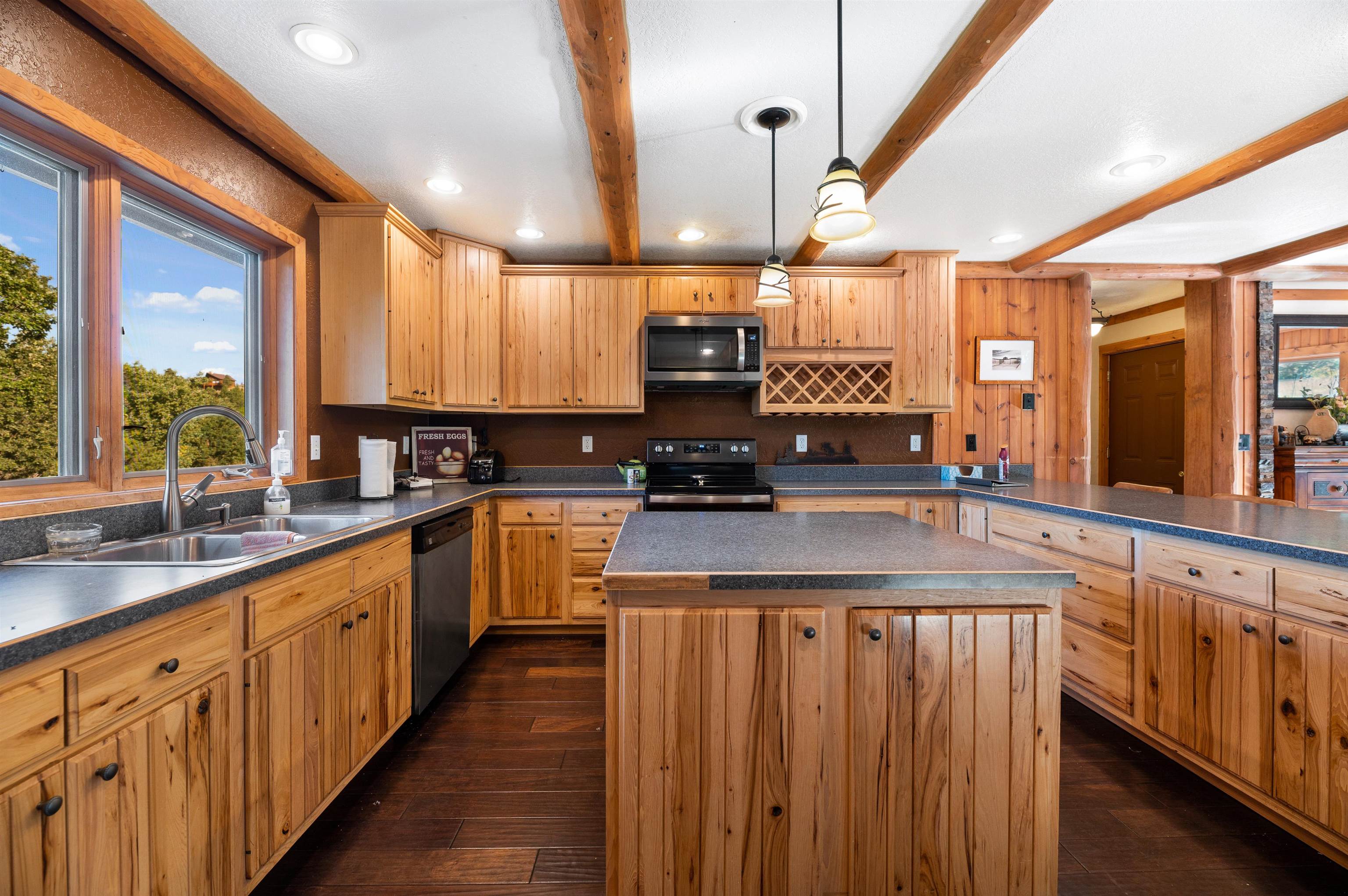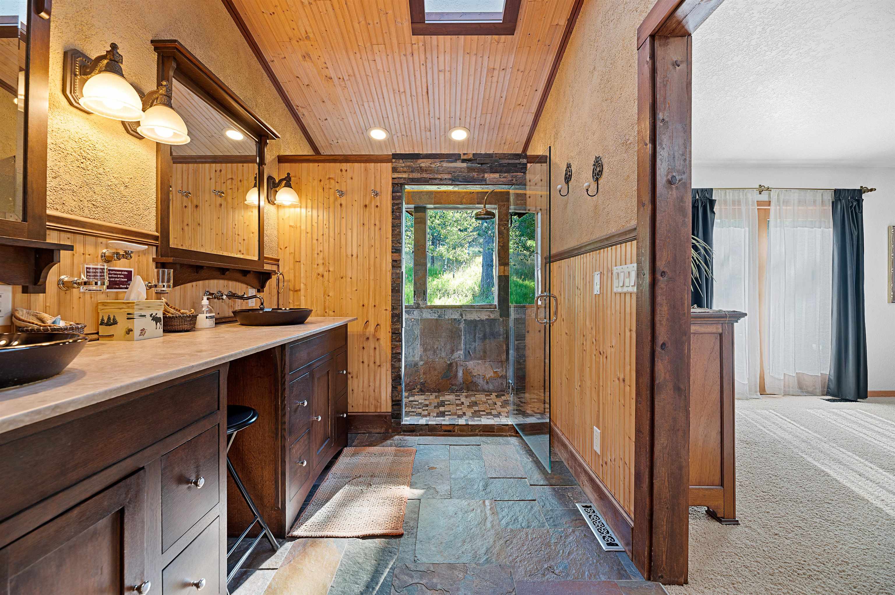 Property presented by Ashley S. Goodrich, SRS at RE/MAX In The Hills (605) 645-2479. An executive turn-key property nestled in the Shirt Tail Gulch S/D off of Boulder Canyon in The Black Hills. Just a few short minutes from Historic Downtown Deadwood! Nice paved roads all the way up to the front door to this beautiful sanctuary. Breathtaking 3.02+/- wooded acres with great privacy. There is a seasonal water feature/ pond right out your front door! About 1 mile from Historic Deadwood and approx. 13 miles to Sturgis, SD! Luxury finishes and warm tones allow this cabin make you feel right at home! 4 bedrooms, 3 bathrooms, huge 3 car garage, home is approximately 3,664 sq. ft.! Master suite is spacious and functional with remodeled bathrooms. The 2 sided fire place in living and dining room allow you to entertain with the open concept and nice flow from room to room. Huge kitchen breakfast bar provides additional seating. Tons of storage and room to move around while you cook! The garage is 34x26 w/ additional storage room. The basement is walkout and leads you to the free standing hot tub. Sit out on the wrap around covered/open wood decks to enjoy the lovely evenings. Tons of summer and winter sports to enjoy very close by if desired! It's an amazing opportunity.