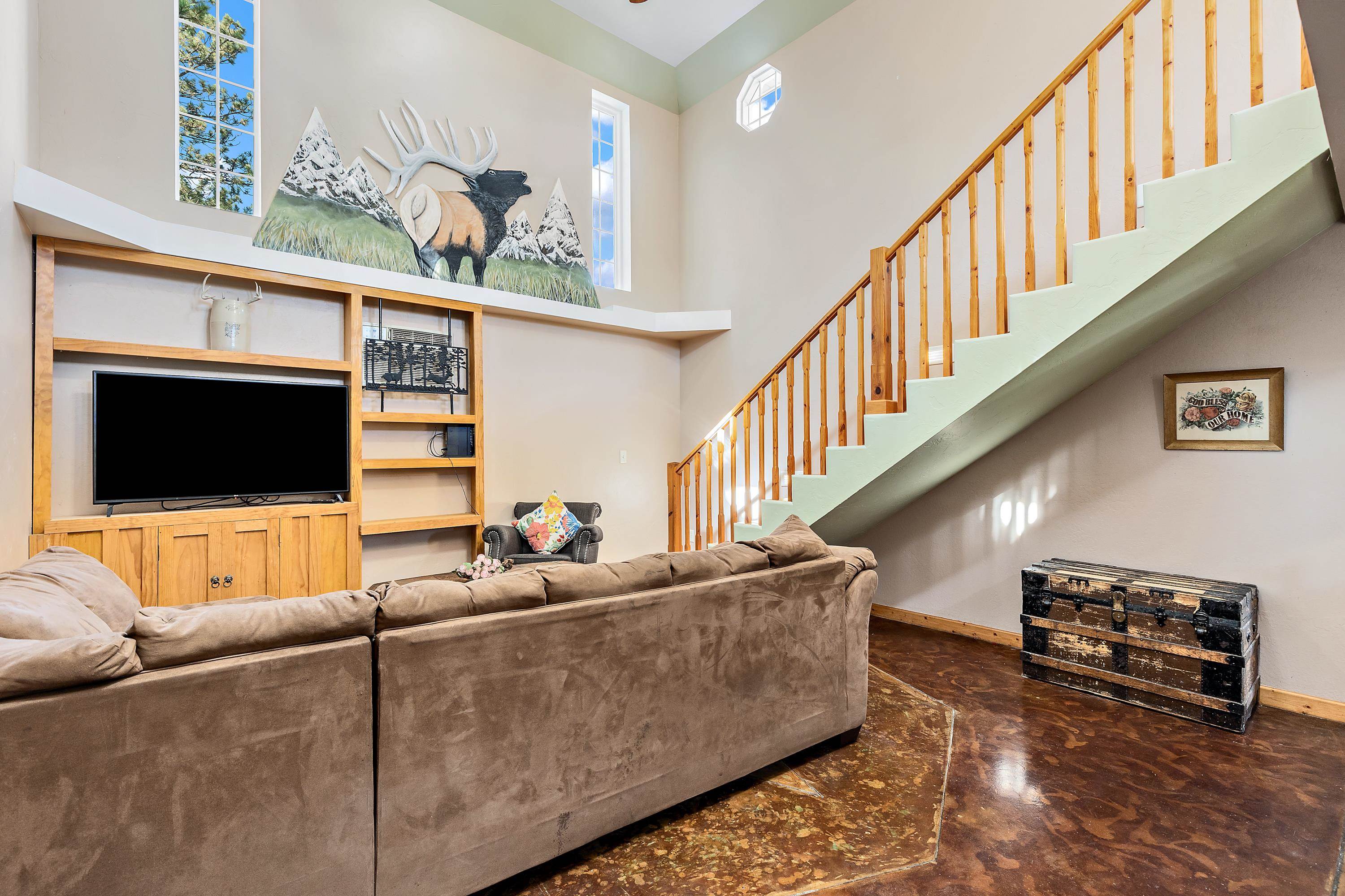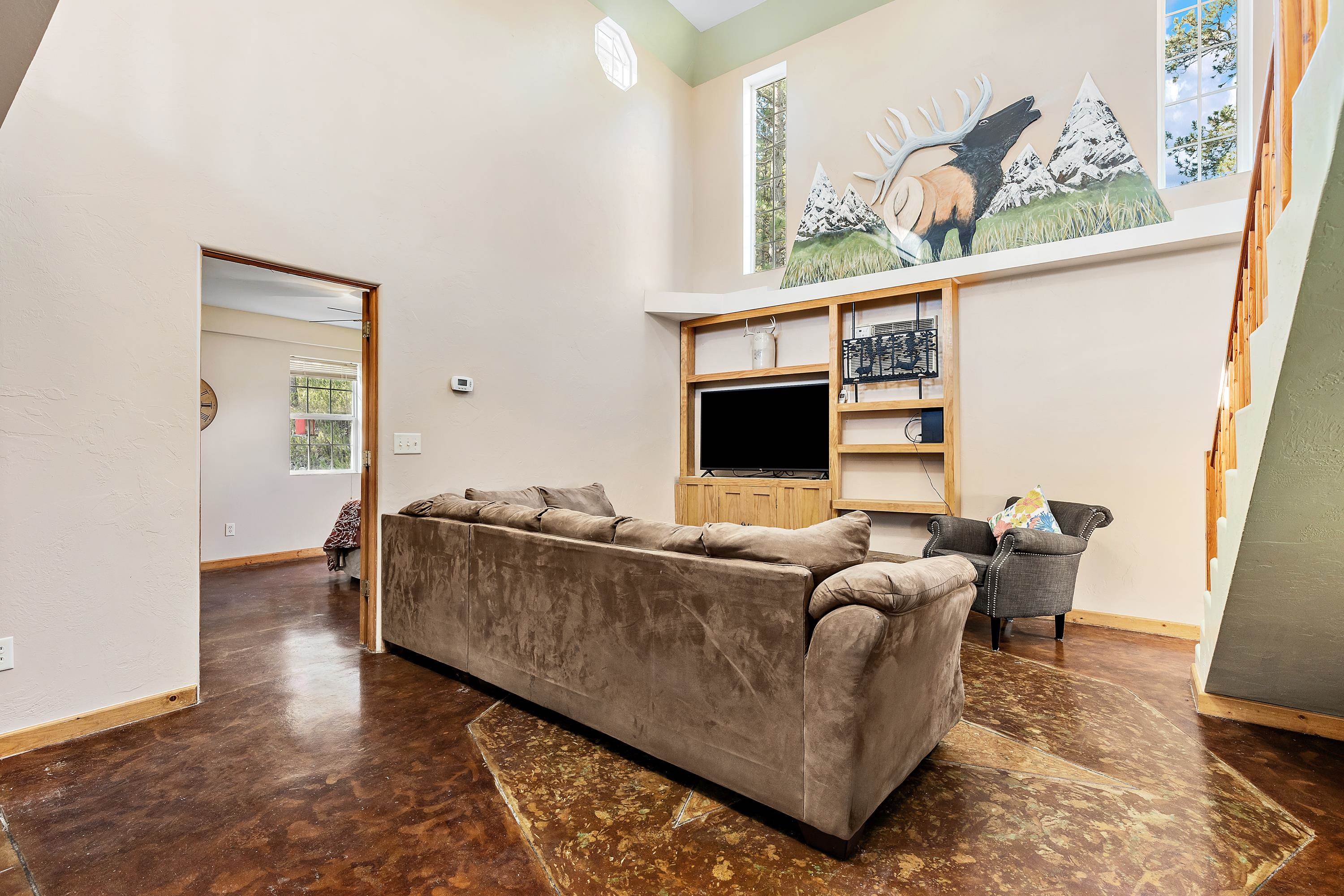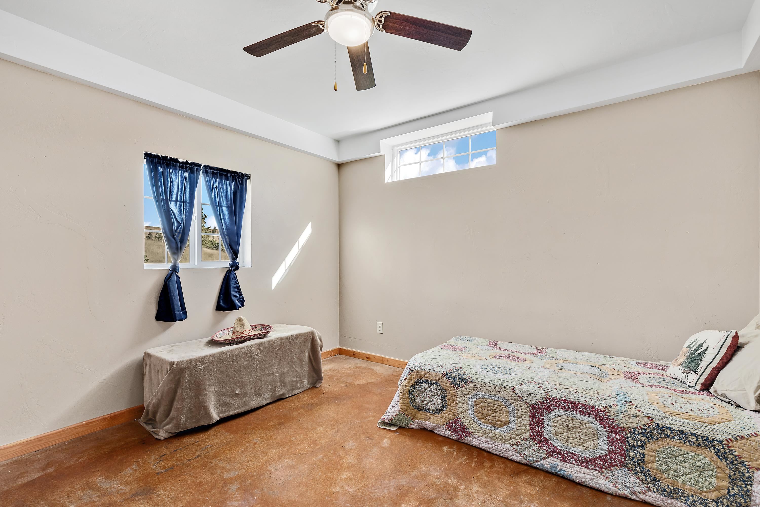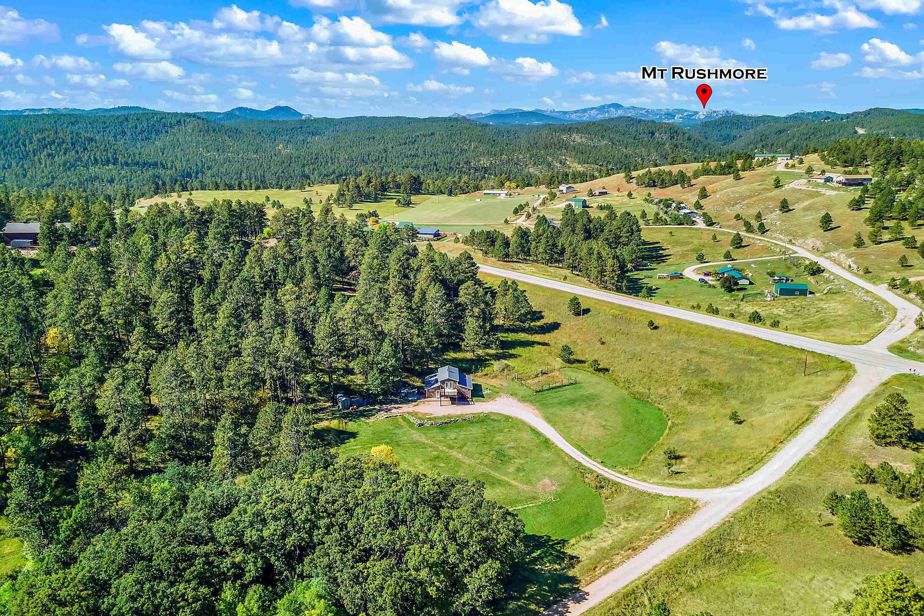 Listed by Cody Brown, Engel & Voelkers Black Hills LLC, 402-910-3553. Sale blew at no fault to the sellers (buyer's financing fell through)! Stop what you are doing and check this one out! No covenants, so you have the freedom to have chickens and other fun farm animals allowed by Pennington County acreage ordinances. Plenty of room to expand and build a garage or shop. There is already a shed with power to it near the home. This post framed house, located in between Hermosa and Keystone, features three bedrooms, two full bathrooms, a loft, and acreage! The main floor has three bedrooms, two bathrooms, laundry room, kitchen, and family room. One of the bedrooms and bathrooms on the main level is the master suite which includes a walk in closet and master bathroom. Radiant heated concrete floors with a finish stain. The loft could be used as an office or an additional bedroom and features a walk out deck that has beautiful views of the surrounding hills and trees. The deck has steps that also lead to the front of the home.
