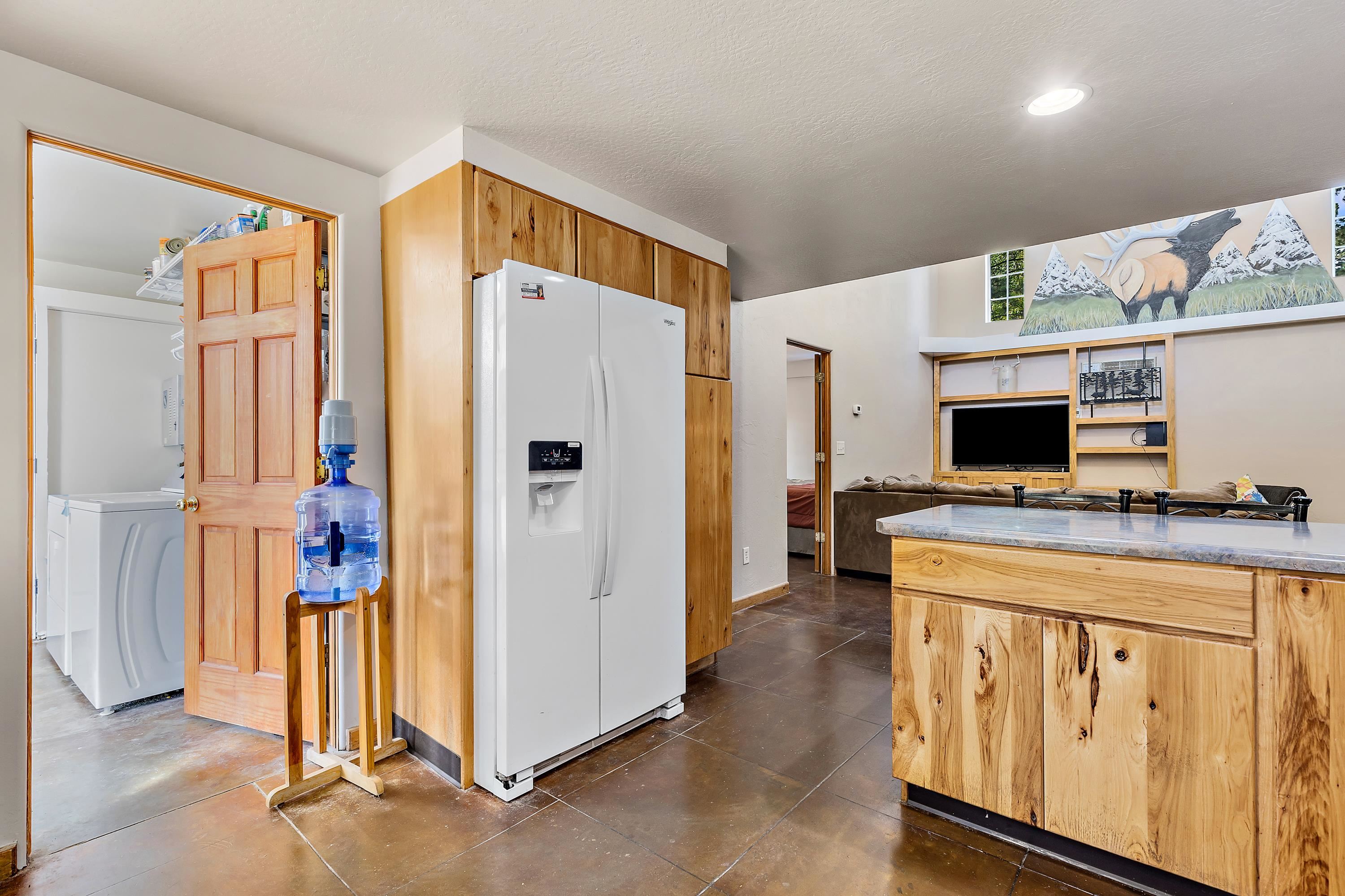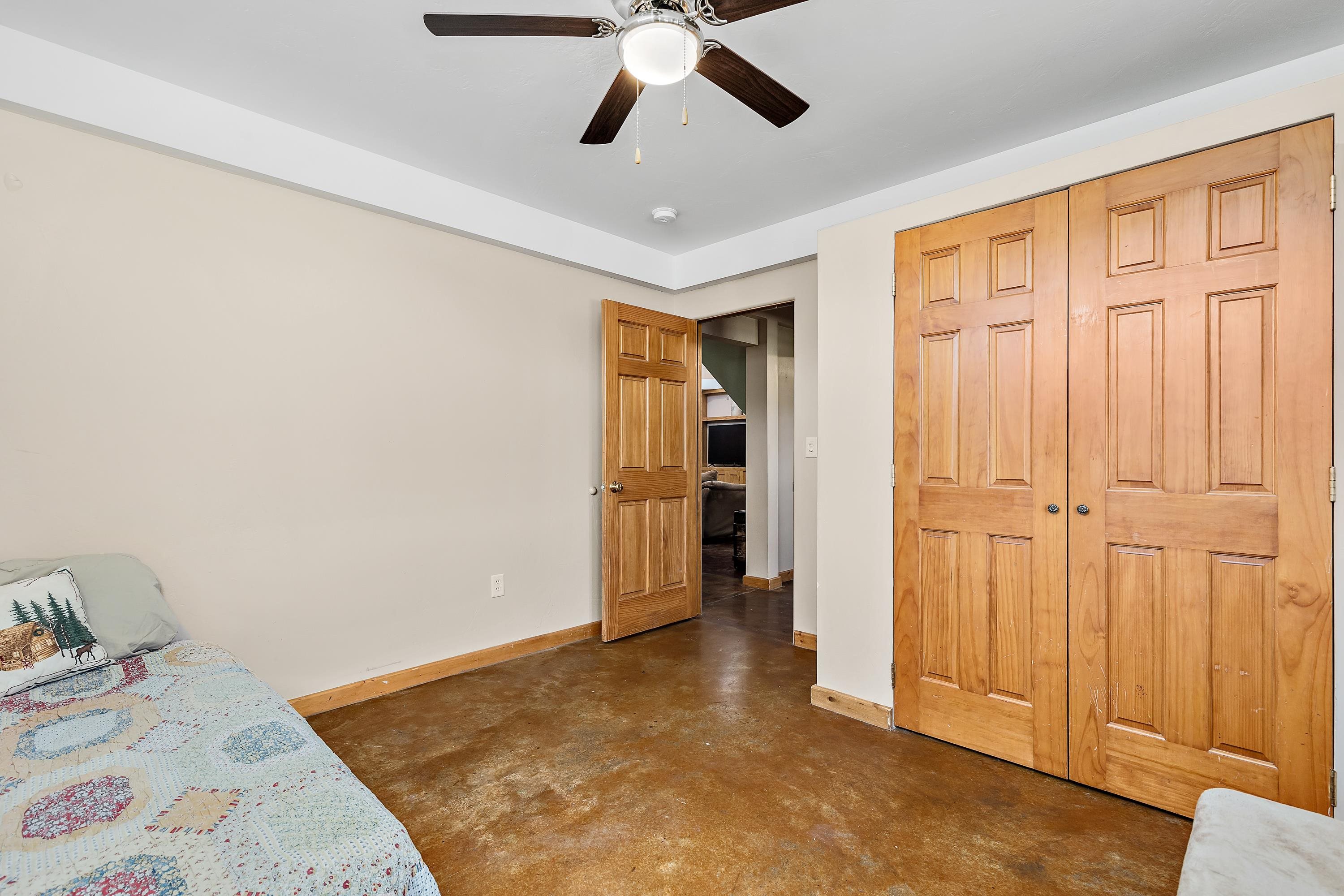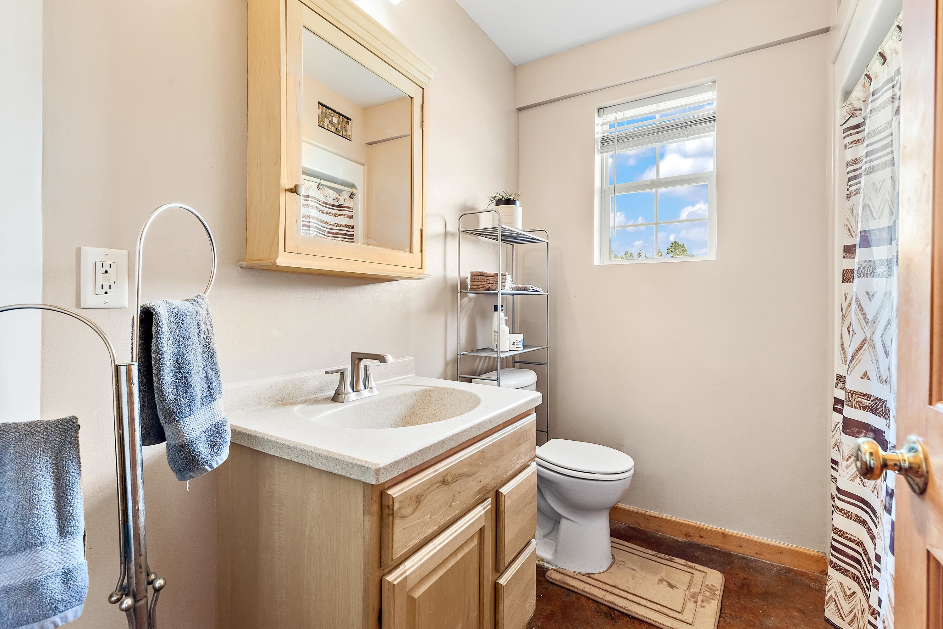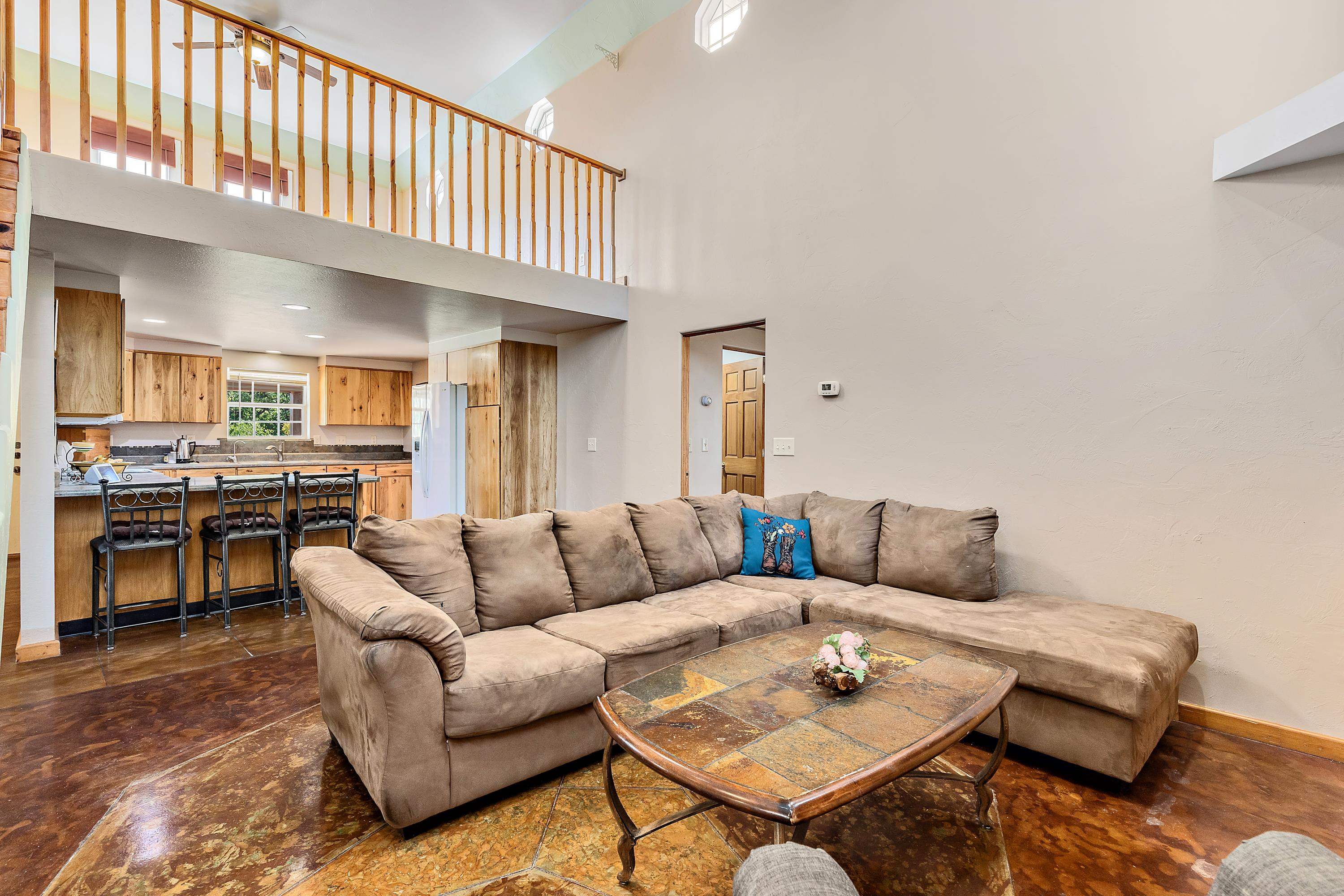 Listed by Cody Brown, Engel & Voelkers Black Hills LLC, 402-910-3553. Sale blew at no fault to the sellers (buyer's financing fell through)! Stop what you are doing and check this one out! No covenants, so you have the freedom to have chickens and other fun farm animals allowed by Pennington County acreage ordinances. Plenty of room to expand and build a garage or shop. There is already a shed with power to it near the home. This post framed house, located in between Hermosa and Keystone, features three bedrooms, two full bathrooms, a loft, and acreage! The main floor has three bedrooms, two bathrooms, laundry room, kitchen, and family room. One of the bedrooms and bathrooms on the main level is the master suite which includes a walk in closet and master bathroom. Radiant heated concrete floors with a finish stain. The loft could be used as an office or an additional bedroom and features a walk out deck that has beautiful views of the surrounding hills and trees. The deck has steps that also lead to the front of the home.
