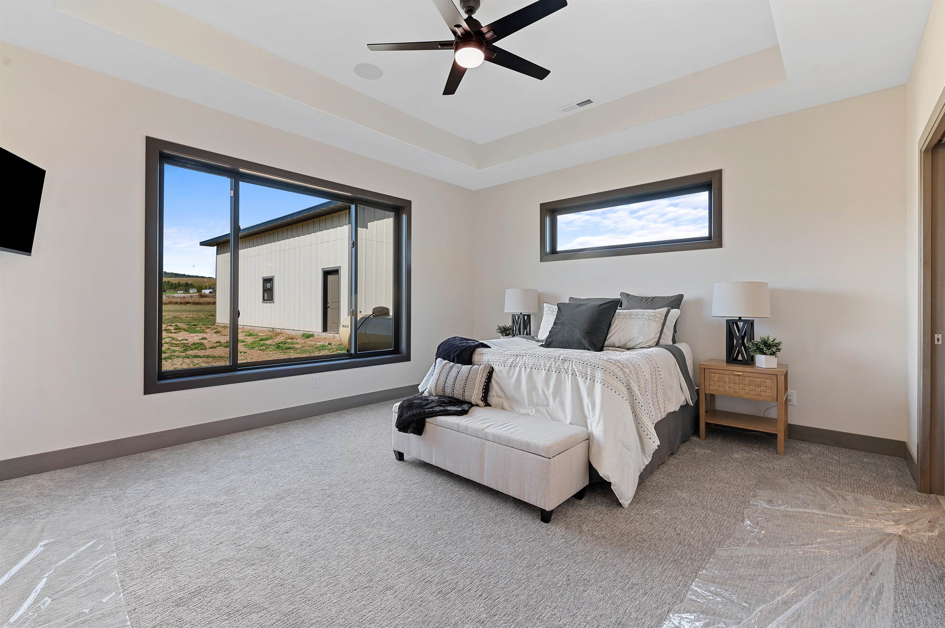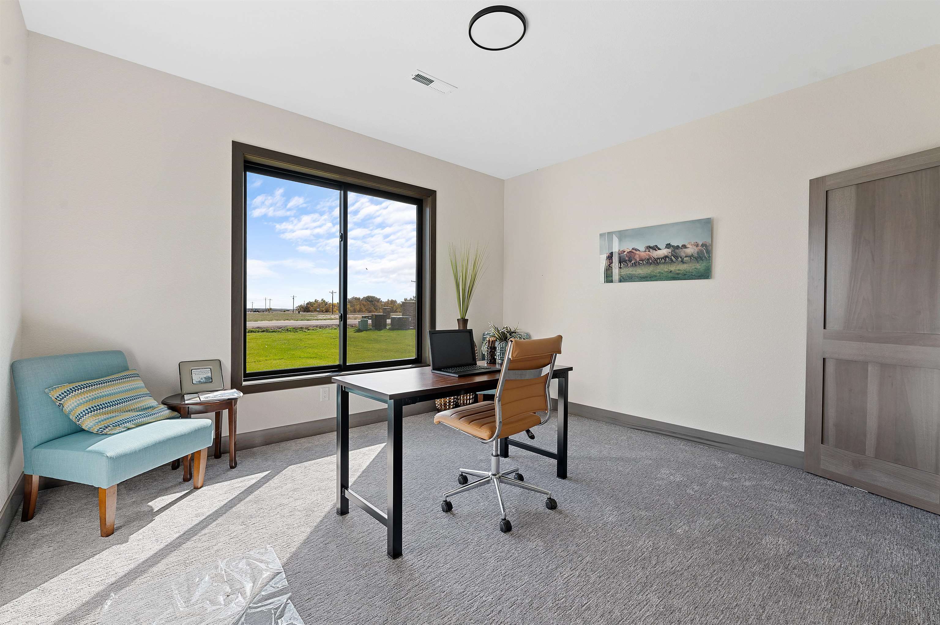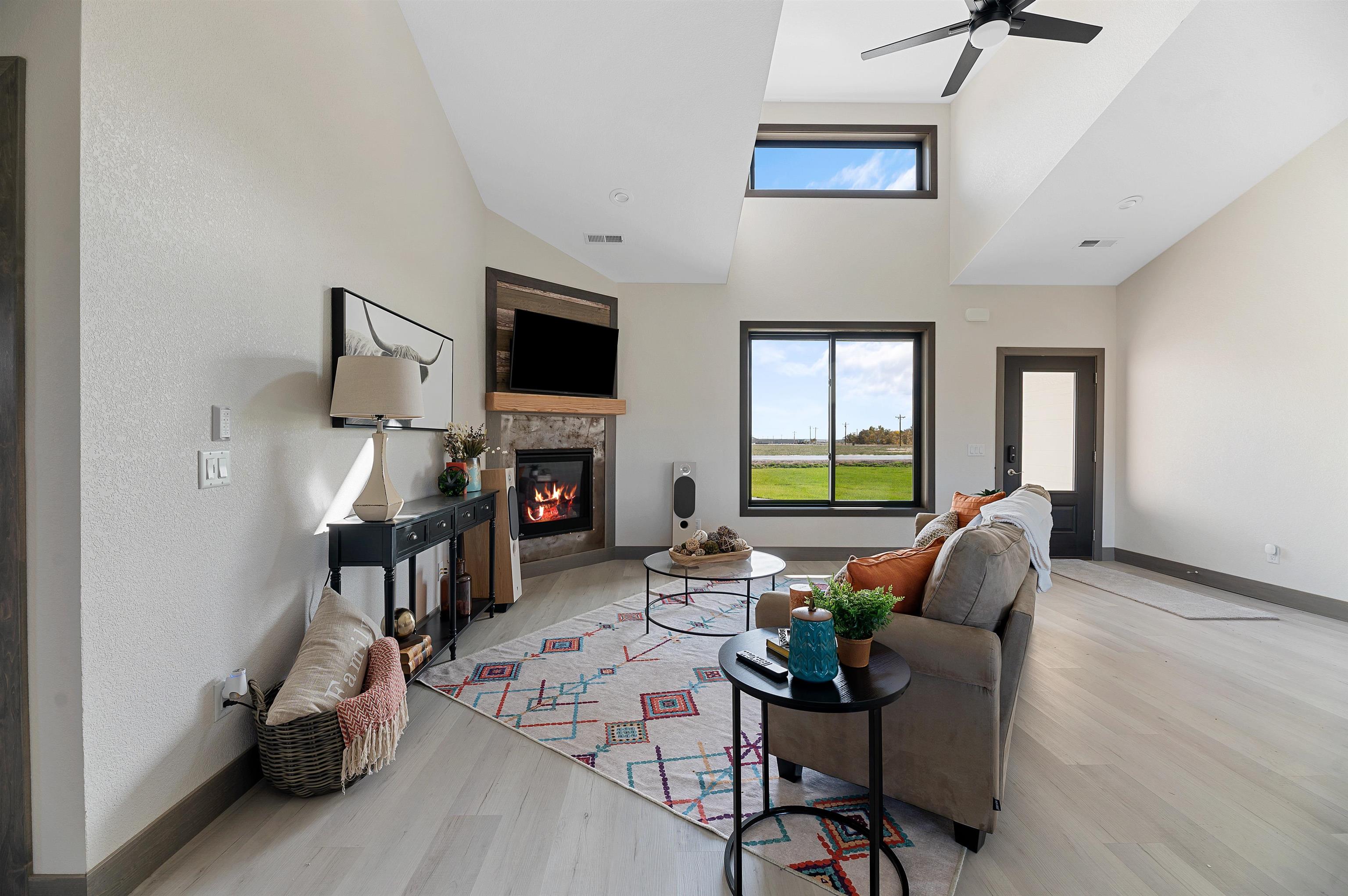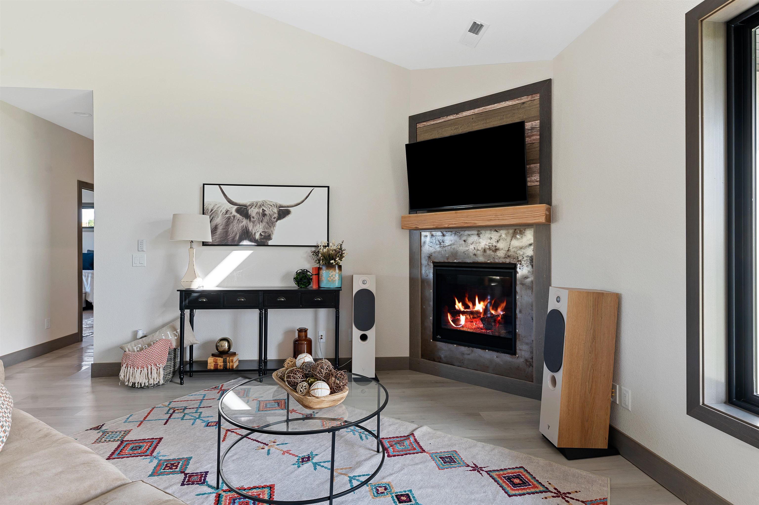 For more information, please contact listing agents Heath Gran 605-209-2052 or Michael Warwick 605-641-2569 with Great Peaks Realty. Welcome to this modern, elegant home in the Pleasant Valley Estates Community! This new construction home is move-in ready with 3 bedrooms, 2 bath and a 3 car garage. This home offers an open concept layout, a cozy rustic fireplace, stunning kitchen with quartz countertops, and detached shop space. Come enjoy the views of the Black Hills while only being minutes from Sturgis.