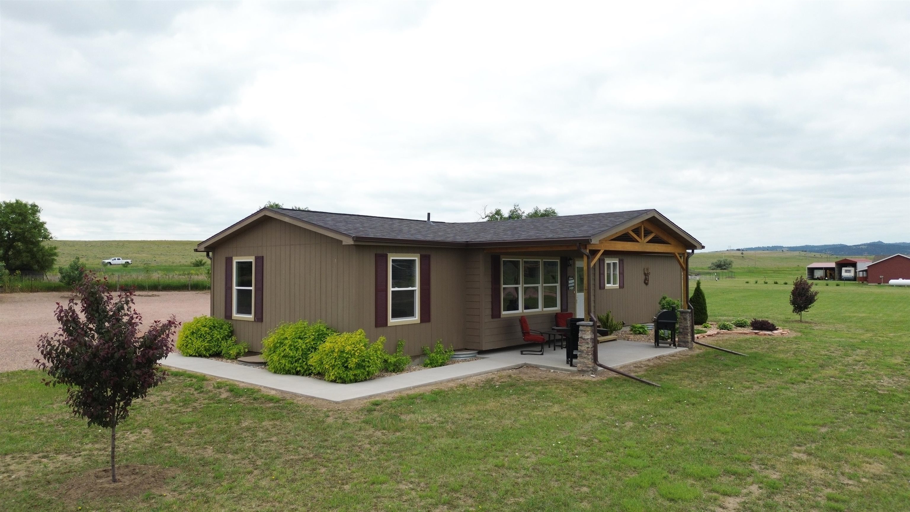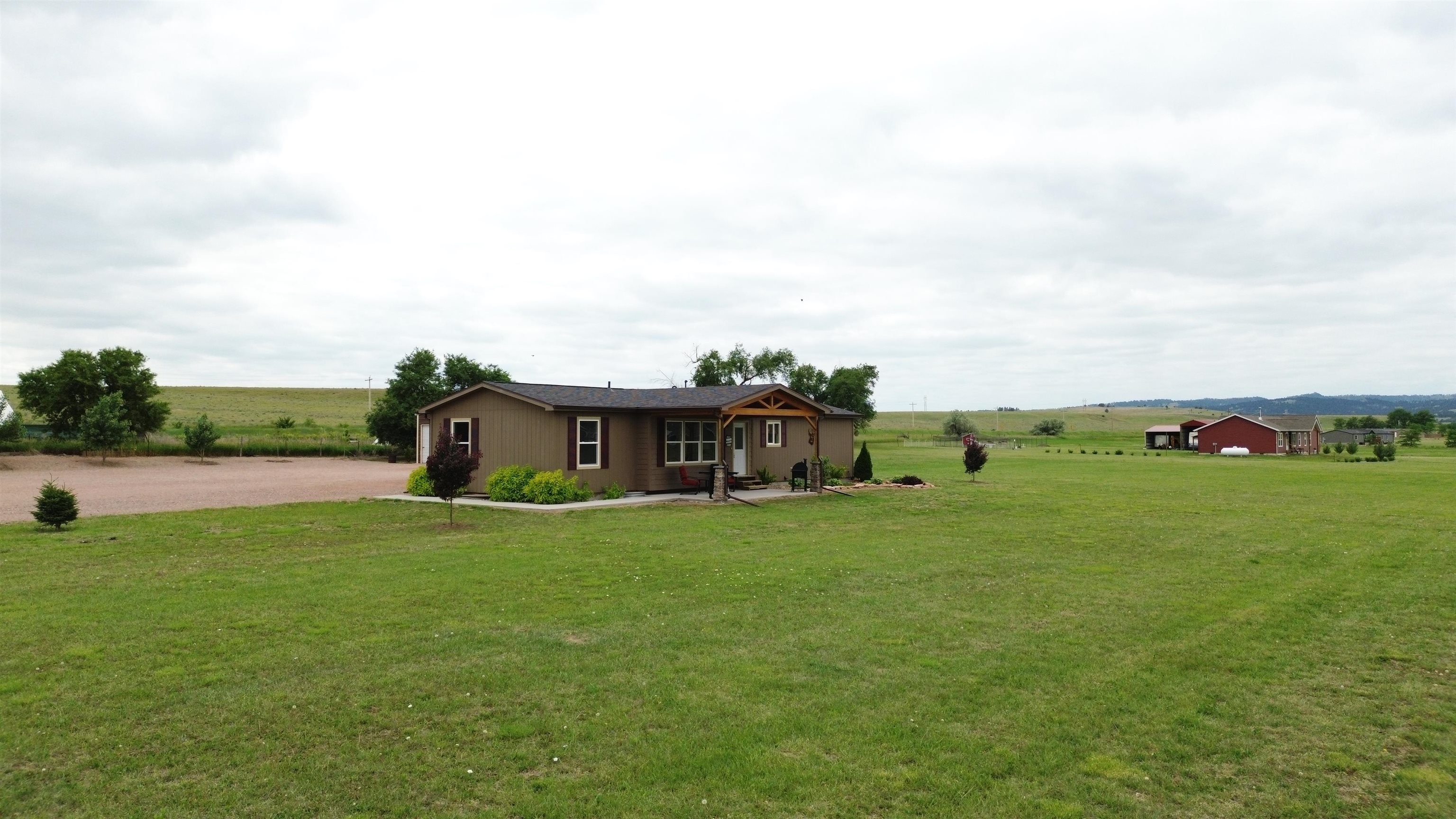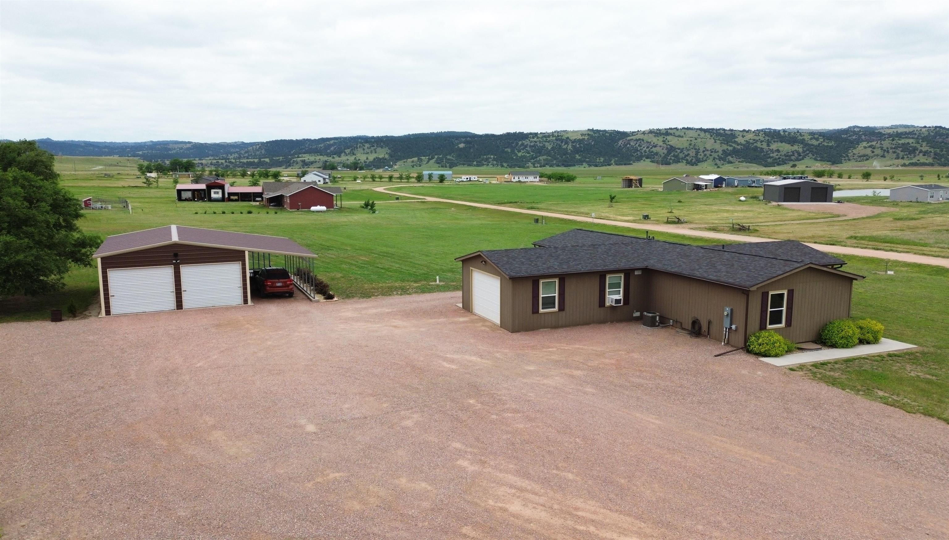 Welcome to your lake retreat! This charming 3-bedroom, 2-bath modular home nestled on 2.42 acres near Angostura Lake offers the perfect blend of tranquility and recreation. Enjoy the outdoors with boating, fishing, and swimming at your fingertips, or take a stroll to the nearby pond just across the road. Beautiful views of the Seven Sisters Mountain range. Custom lighting throughout and several other accents convey a cozy lodge theme. The attached garage is a hobbyist's dream, equipped with a ventless propane heater and air conditioning for year-round comfort. Need extra space? A detached 24x35 shop with a convenient carport awaits, providing ample room for projects and storage. Rest easy under the protection of a new roof and gutters, ensuring your home is as reliable as it is inviting. RV enthusiasts will appreciate the 50-amp exterior service, ready for your next adventure. A drip system has been installed to help effortlessly maintain some of landscaped areas around the home. Convenience meets serenity as this property is just a few miles from Hot Springs, offering access to the best of the Southern Hills. Discover the perfect balance of peaceful living and exciting recreation in this well-appointed modular home. Your lakeside haven awaits – schedule your visit today!