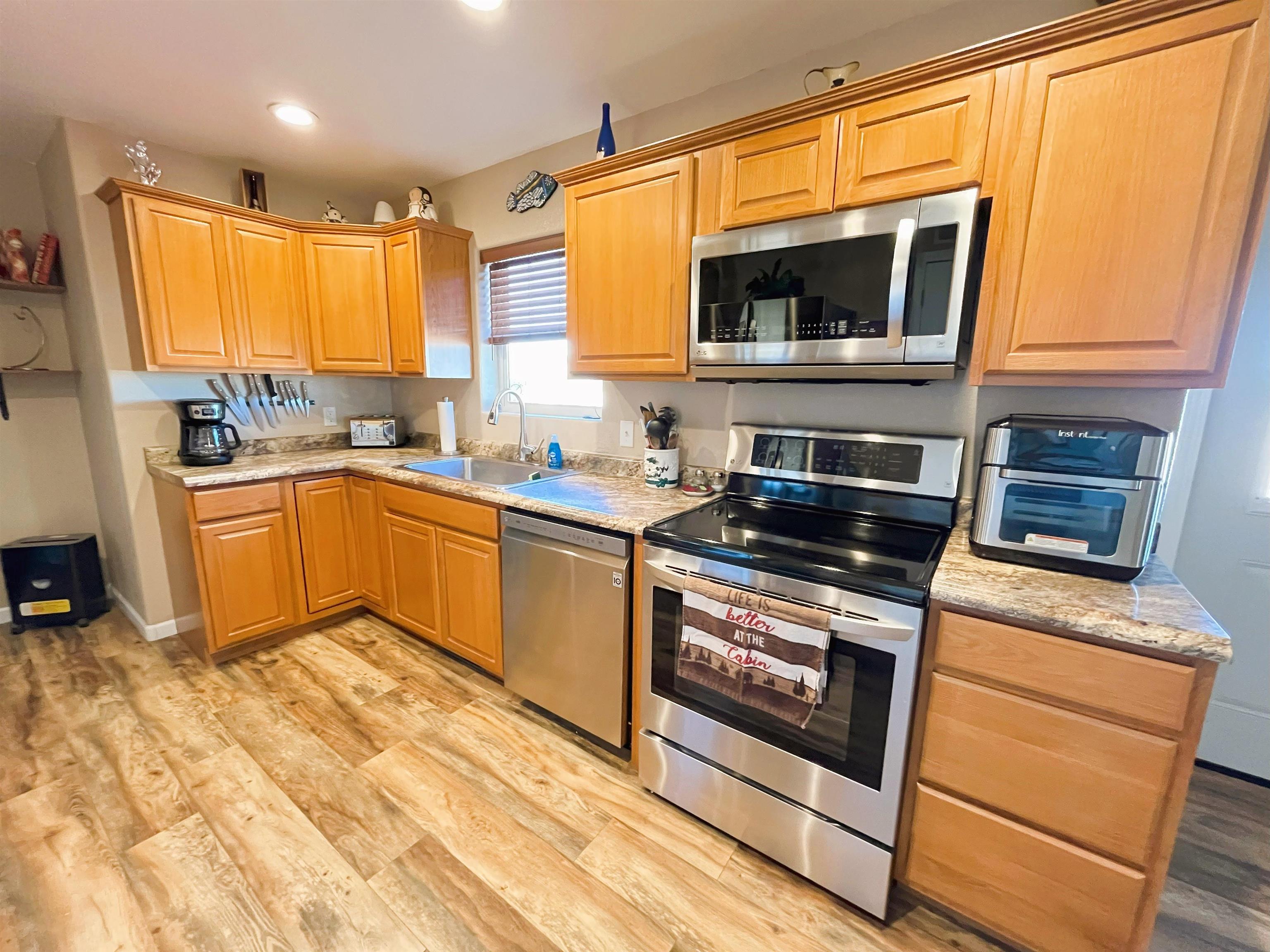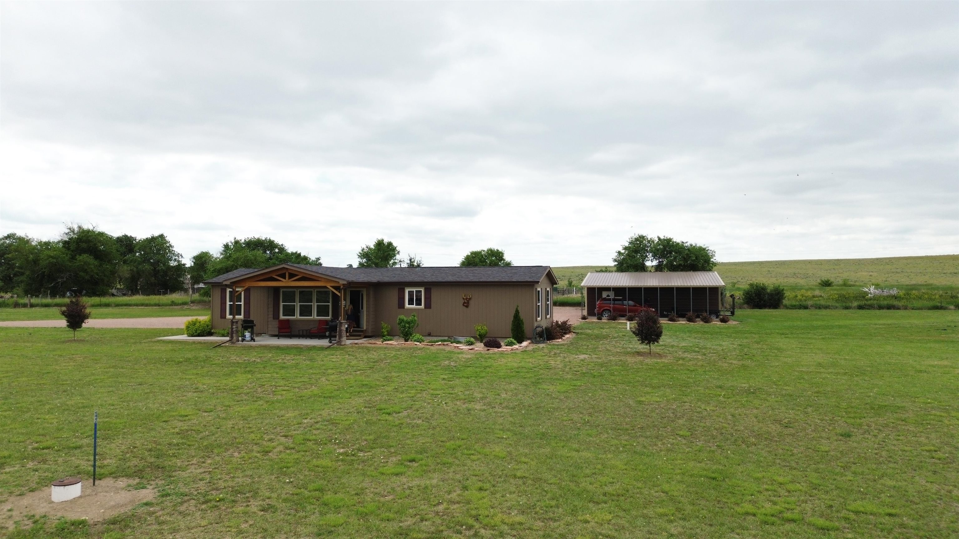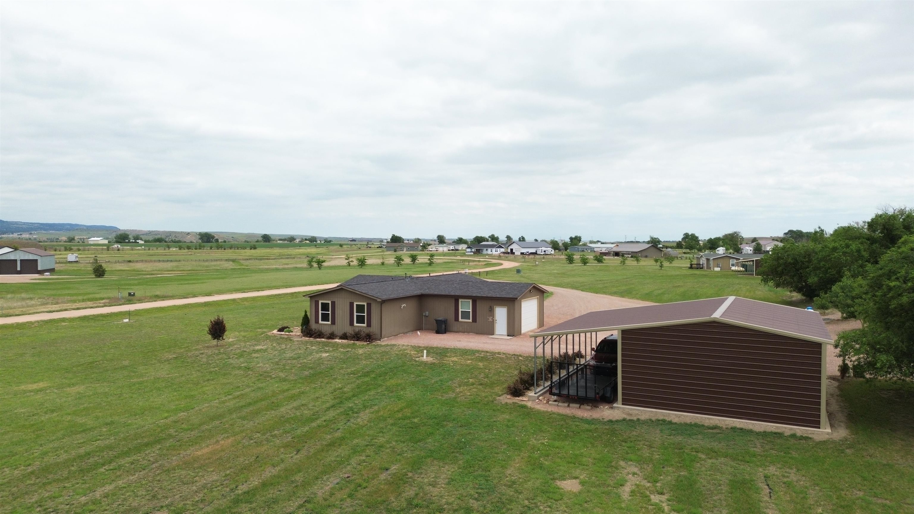 Welcome to your lake retreat! This charming 3-bedroom, 2-bath modular home nestled on 2.42 acres near Angostura Lake offers the perfect blend of tranquility and recreation. Enjoy the outdoors with boating, fishing, and swimming at your fingertips, or take a stroll to the nearby pond just across the road. Beautiful views of the Seven Sisters Mountain range. Custom lighting throughout and several other accents convey a cozy lodge theme. The attached garage is a hobbyist's dream, equipped with a ventless propane heater and air conditioning for year-round comfort. Need extra space? A detached 24x35 shop with a convenient carport awaits, providing ample room for projects and storage. Rest easy under the protection of a new roof and gutters, ensuring your home is as reliable as it is inviting. RV enthusiasts will appreciate the 50-amp exterior service, ready for your next adventure. A drip system has been installed to help effortlessly maintain some of landscaped areas around the home. Convenience meets serenity as this property is just a few miles from Hot Springs, offering access to the best of the Southern Hills. Discover the perfect balance of peaceful living and exciting recreation in this well-appointed modular home. Your lakeside haven awaits – schedule your visit today!