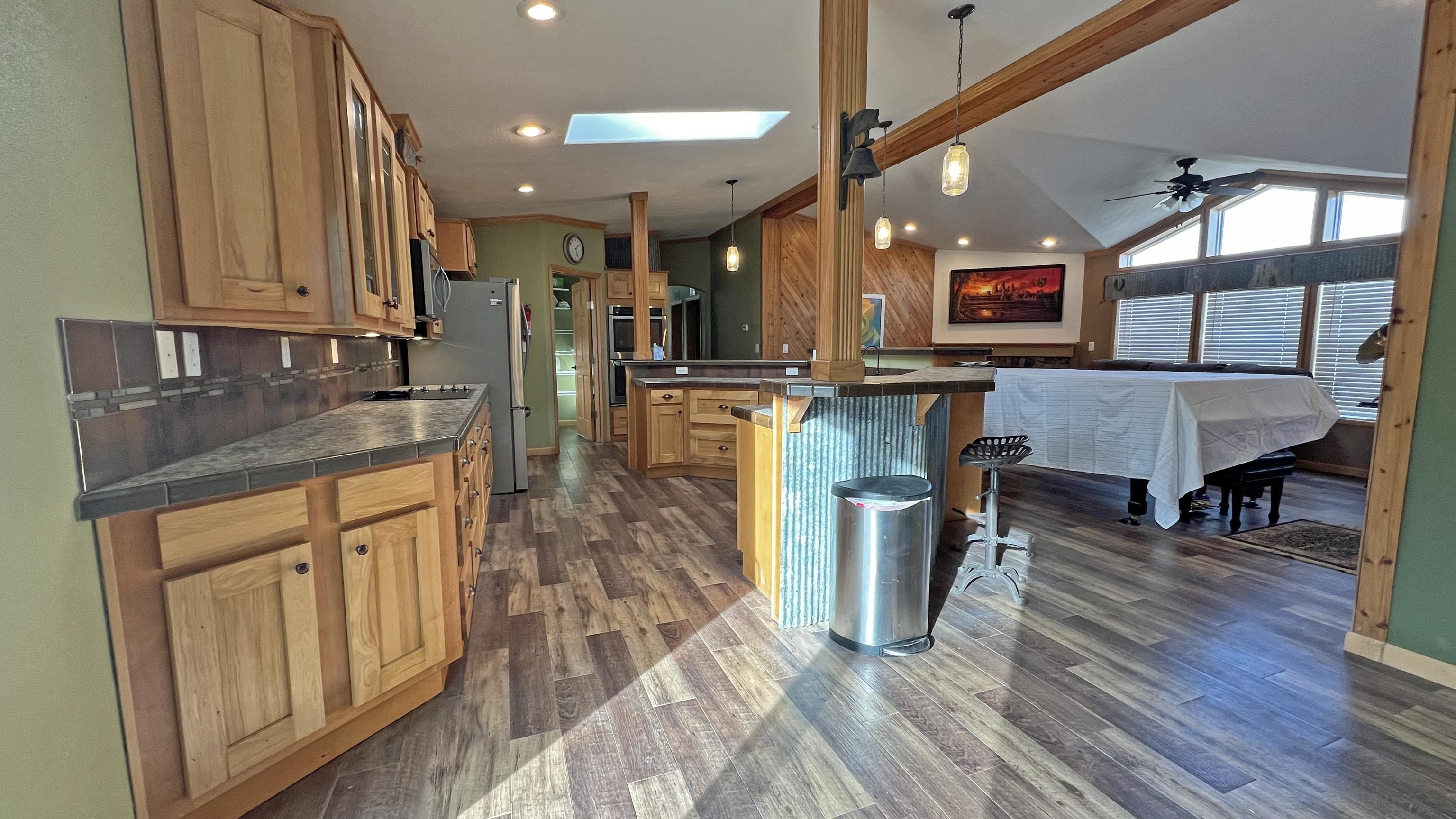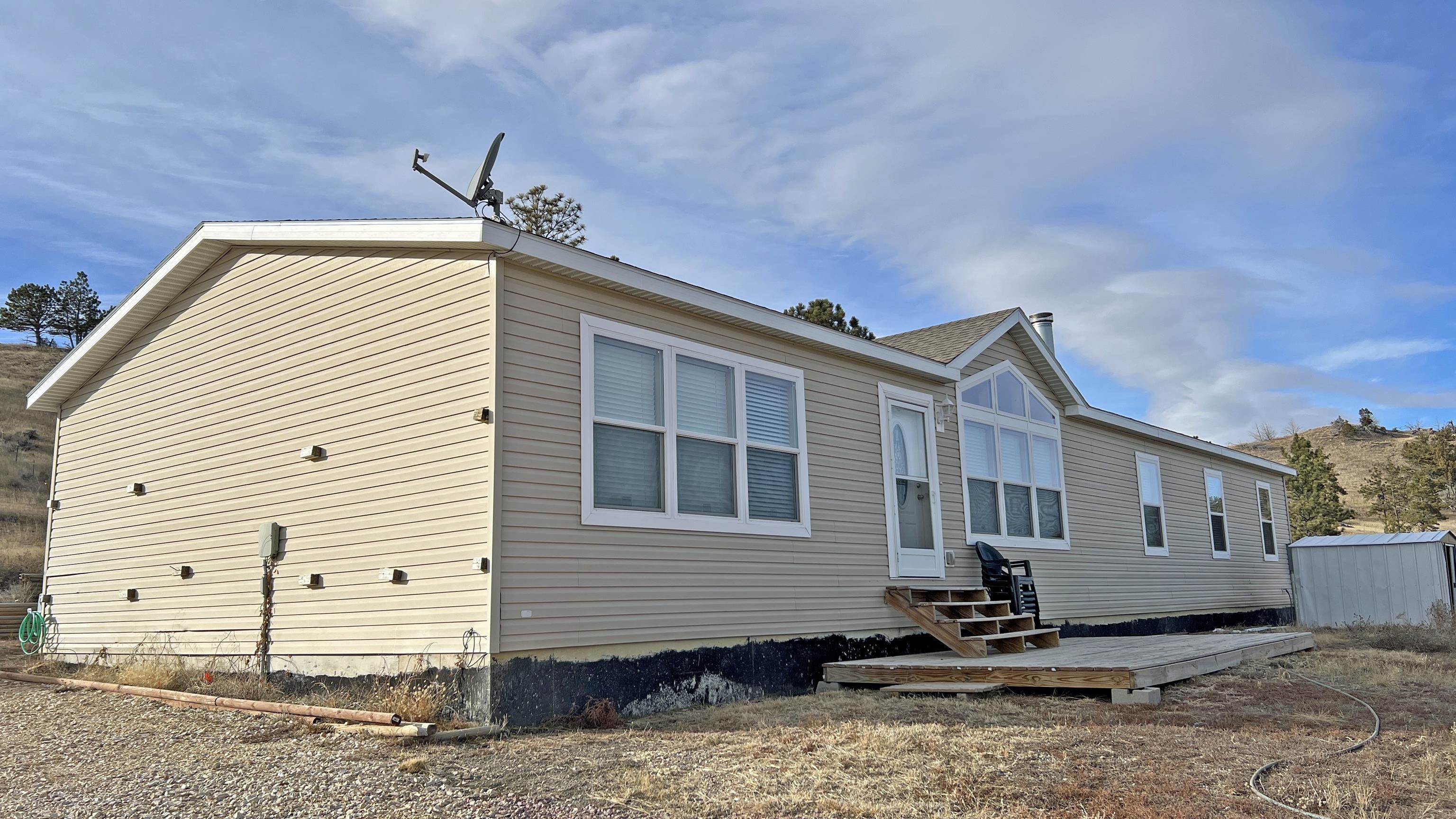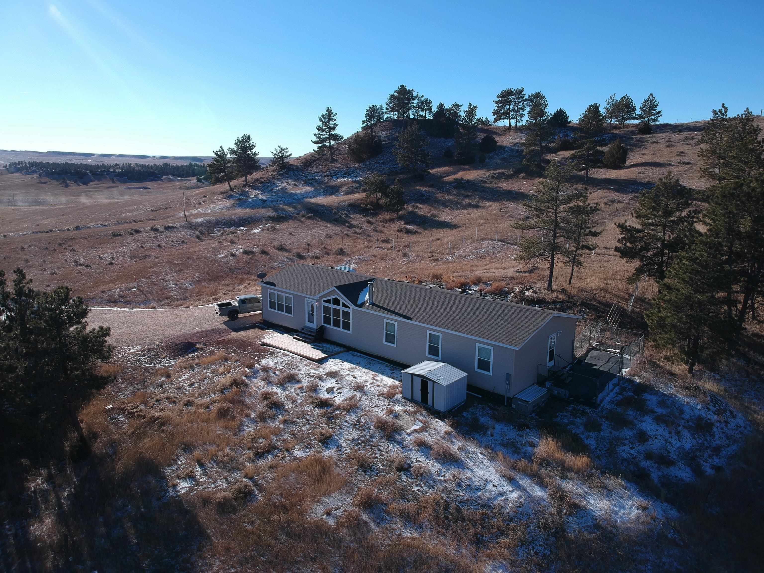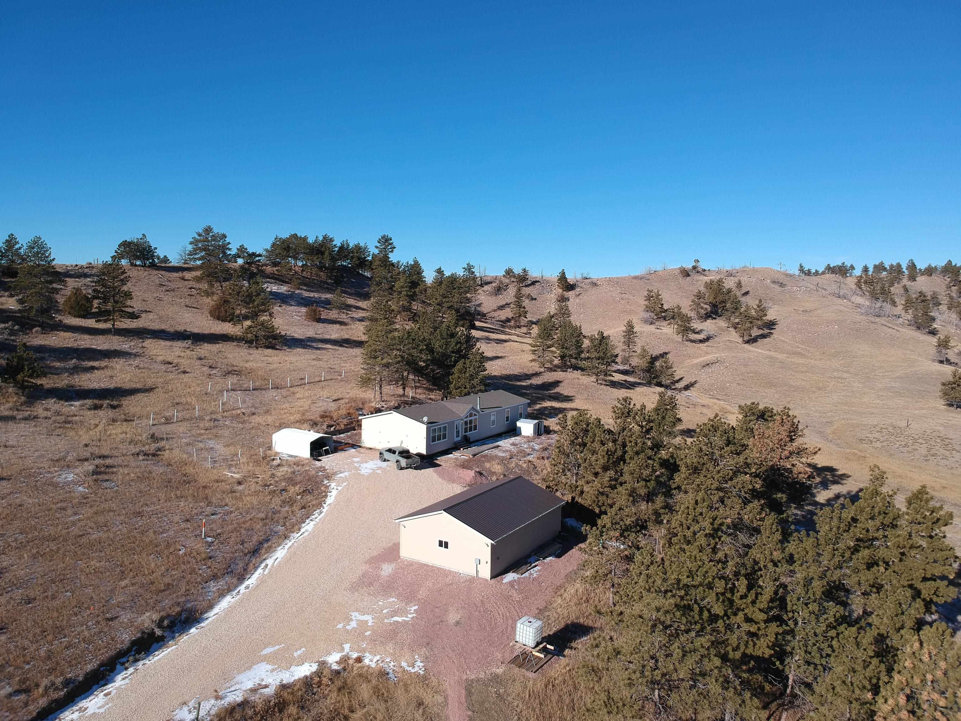 Excellent opportunity to own a newer 4-bedroom residence nestled on 35 acres, boasting breathtaking panoramic views of the vibrant Cheyenne River Breaks, where wildlife thrives! This Schult Custom Home stands on a poured concrete foundation, featuring a bright and expansive floor plan. The spacious kitchen is a highlight, equipped with sleek stainless steel appliances, a walk-in pantry, and versatile seating options at both the bar and in the dining area. The kitchen seamlessly flows into the spacious living room adorned with a fireplace and a striking wall of windows that frame the picturesque surroundings. The Master bedroom is a welcoming retreat, featuring a walk-in closet and a master bathroom with double sinks and a large shower. The property comprises a captivating blend of rolling hills, scattered timbers, and meadows, enclosed by perimeter fencing and cross-fenced pastures. A well supplies water and is used to fill the storage cistern, both of which have been improved in the last year. Noteworthy features abound, including newer laminated flooring, high-speed fiber optic internet, an on-demand water heater, and a new water softener system, including an RO system in the kitchen for drinking water. Finally, a new climate-controlled 24 x 36 garage was built in the past year. Walk-in access to 1,000s of acres of BLM land with elk, deer, and turkey, & just minutes to the south boat dock of Angostura Reservoir and additional acres of Public Land!