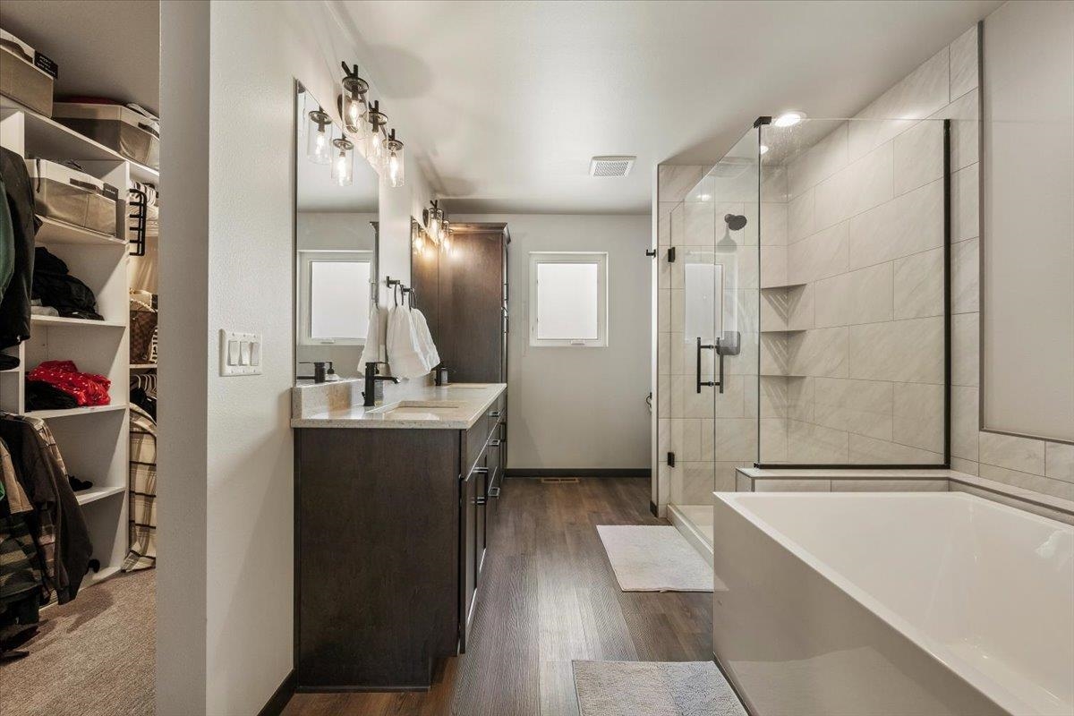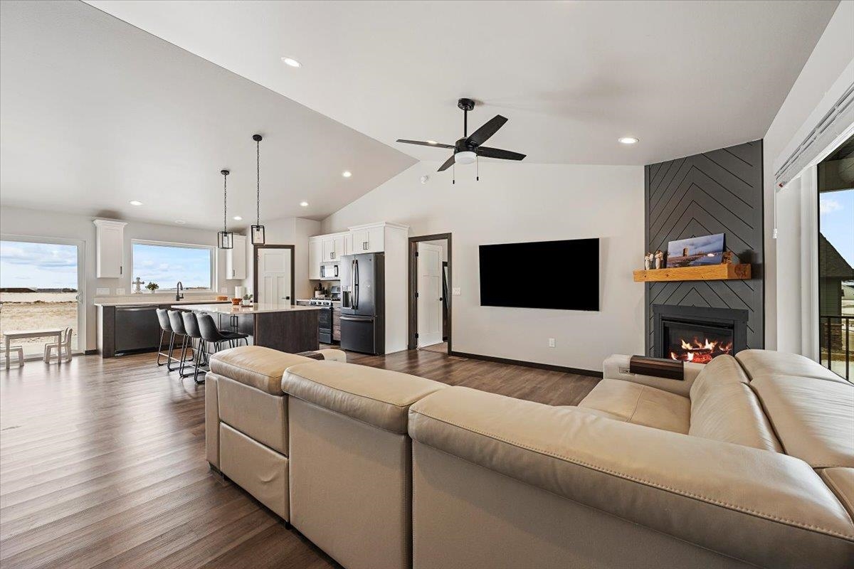 For more information, please contact listing agent Zac Zandstra 605-484-3266 with Great Peaks Realty. Located in the highly desirable & sought after Top Shelf subdivision, this beautiful home has so much to offer. Fully landscaped with extra parking on the side of the property & a south facing driveway, the exterior provides great curb appeal. The main level includes 2 beds & 2 baths, an adequately sized laundry/mud room, & a walk-out patio with great views. Quartz countertops, under cabinet lighting, high-end kitchen appliances, a gas fireplace in the living room, gas connection for a grill on the back patio, & a Trex deck that's covered out front are just a few items & things that make this property so special. The primary bedroom includes a luxurious bathroom with a free-standing tub, walk-in shower, double sinks, & a large walk-in closet. The fully finished basement offers plenty of room for entertaining with a huge family room & another 2 beds & 1 bath. There's a radon mitigation system installed as well. This gem won't last long, call today to schedule a showing!